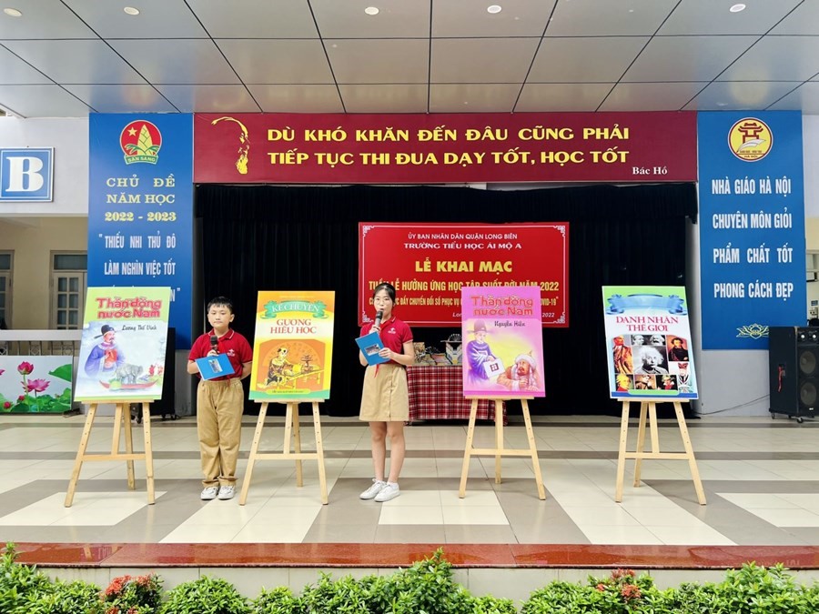 Trong không khí cả nước phát động thi đua chào mừng tuần lễ hưởng ứng học tập suốt đời năm 2022 với chủ đề “Thúc đẩy chuyển đổi số phục vụ cho học tập suốt đời sau đại dịch Covid 19”, em Phạm Hương Giang và bạn Hải Phong học sinh lớp 5D xin giới thiệu tới quý thầy cô và các bạn cuốn sách “Kể chuyện gương hiếu học” được biên soạn bởi 2 tác giả Hoàng Trang và Phương Thùy. Sách dày 199 trang, in theo khổ 13x21 cm do Nhà xuất bản Văn học ấn hành năm 2016.
