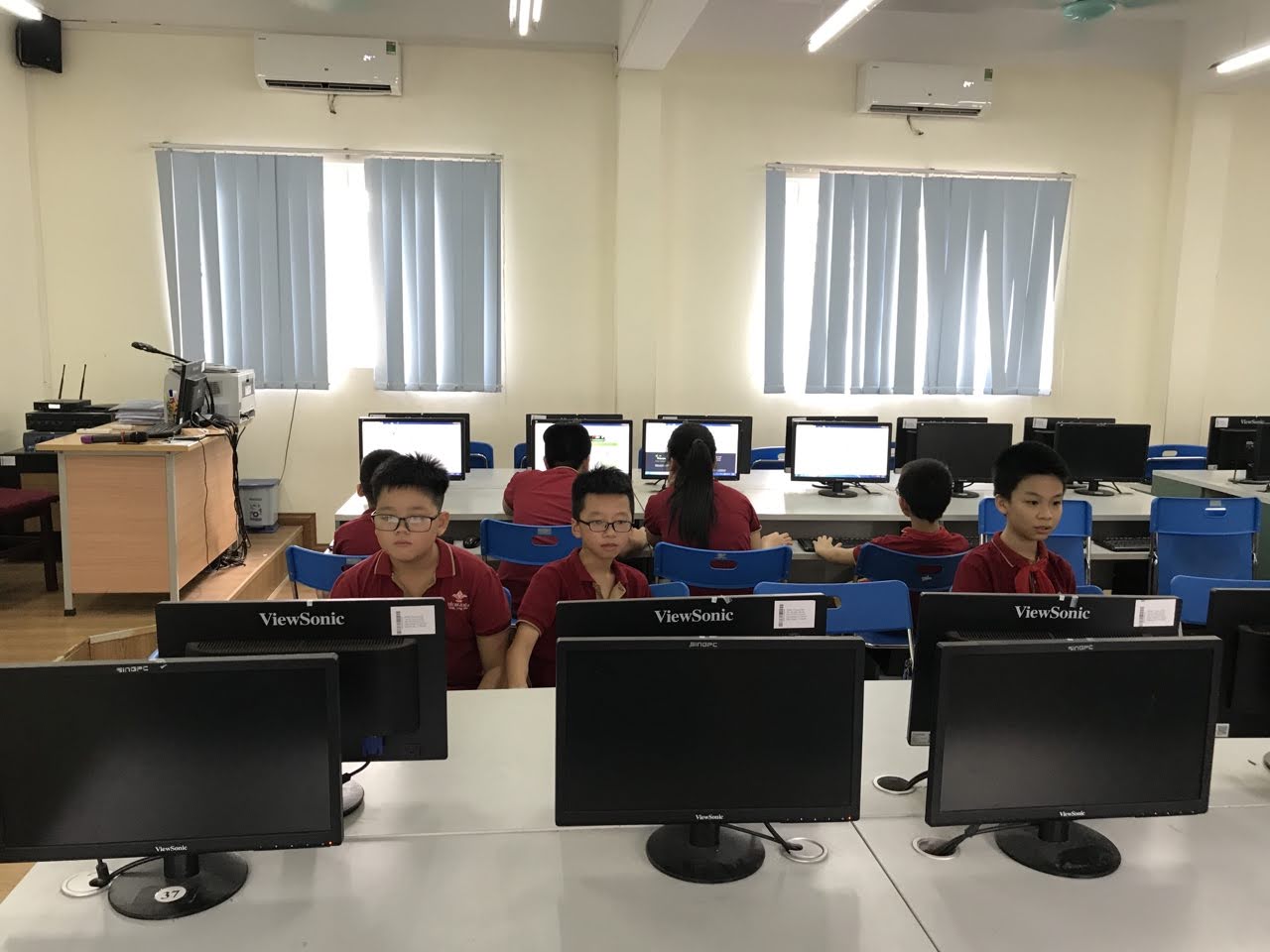 Ngay sau ca thi thứ nhất của các em học sinh lớp 4 là ca thi giải toán qua Internet cấp Quốc gia môn Toán – tiếng Việt của 8 bạn học sinh lớp 5. Sau thời gian 45 phút dự thi (từ 9giờ 15 phút đến 10 giờ) bạn Vũ Quang Ngọc (5C) và bạn Lê Tùng Lâm (5D) xuất sắc dành số điểm cao nhất là 410 điểm sau 3 vòng thi.