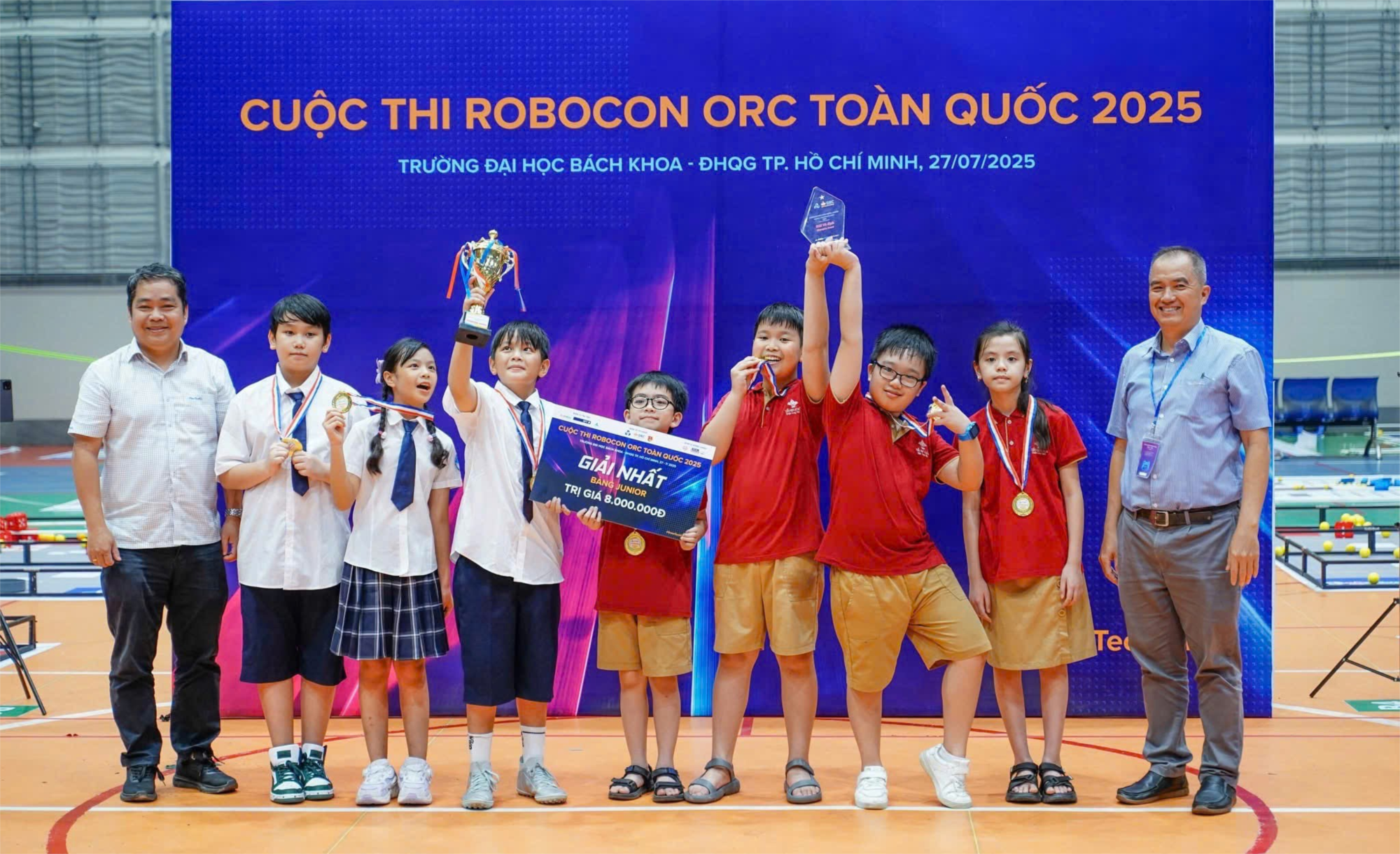 Các em đã có quá trình làm việc nhóm hiệu quả dưới sự hướng dẫn tận tình, sáng tạo của thầy giáo Nguyễn Thắng Thành. Qua các vòng thi, các em đã vận dụng tốt kiến thức lập trình cơ bản, kỹ năng điều khiển robot cũng như tư duy chiến thuật để hoàn thành nhiệm vụ chính xác, nhanh chóng và phối hợp nhuần nhuyễn trong mô hình thi đấu liên minh - một điểm đặc biệt của ORC.
