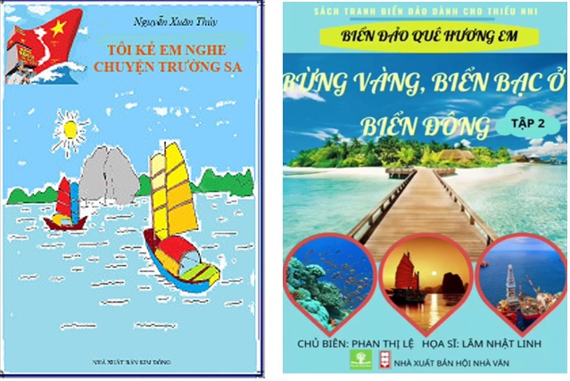 Vận dụng những kiến thức Tin học đã học, khéo léo sử dụng các phần mềm ứng dụng như Microsoft Paint, Adobe Photoshop, Canva..., các em học sinh khối 4 đã thể hiện sự sáng tạo của mình thiết kế bìa cho một cuốn sách thuộc chủ đề “Biển đảo quê hương em” vô cùng ấn tượng.