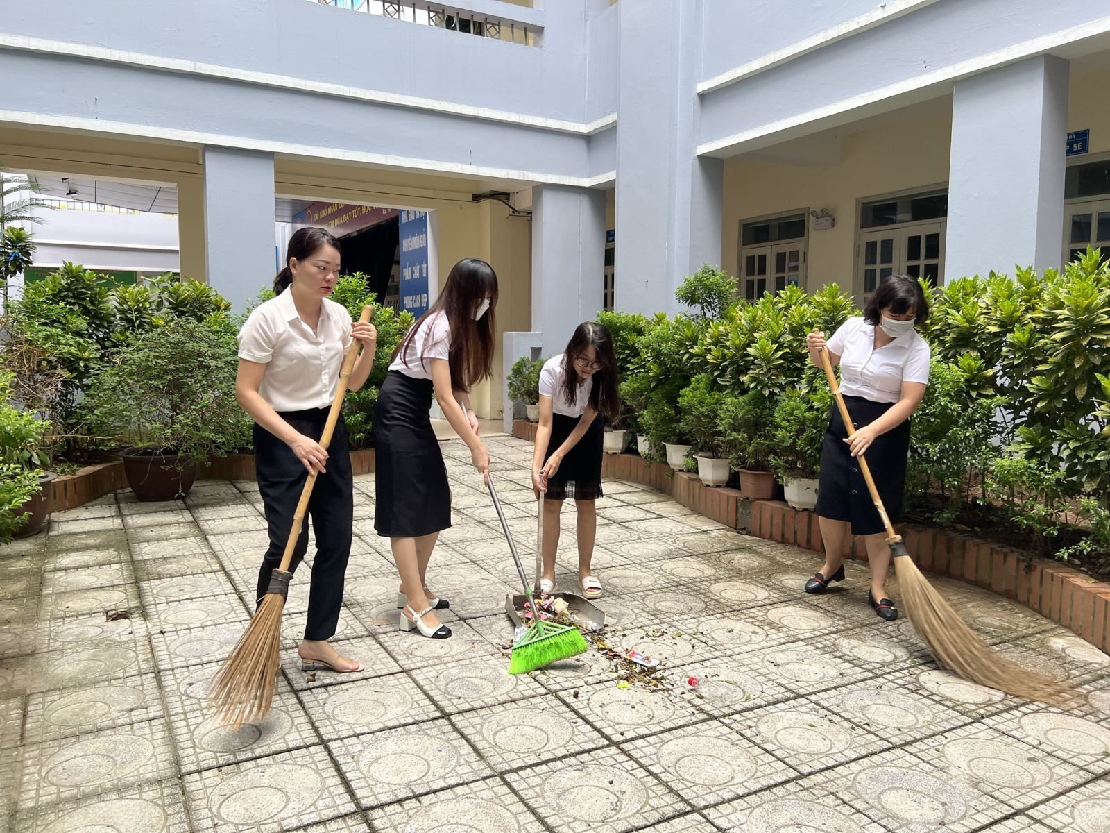 (Một số hình ảnh CB-GV tổng vệ sinh trường lớp và nhân viên phun thuốc muỗi)