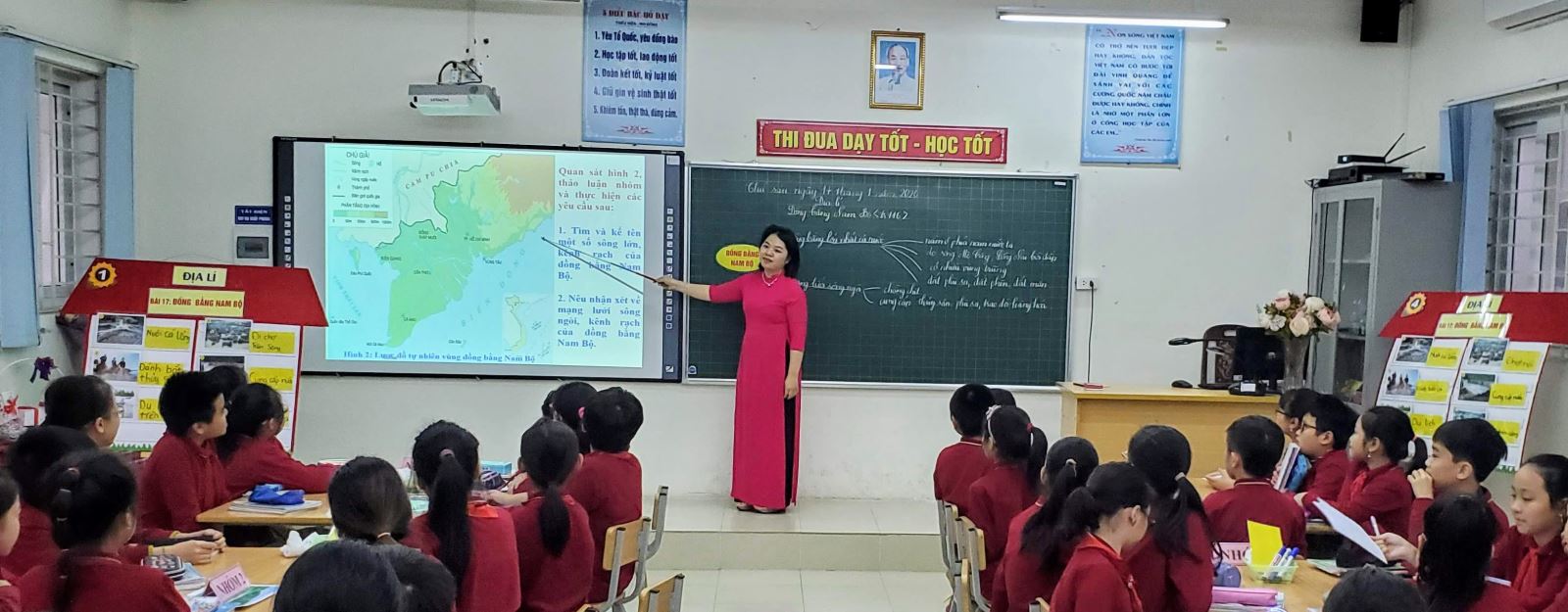 Cô giáo Nguyễn Thùy Dung - GVCN lớp 4A trong tiết dạy môn Địa lí