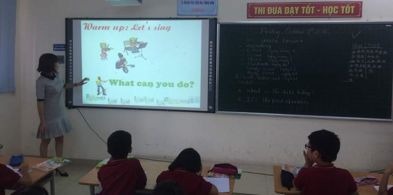Khi các bạn học sinh đã nắm vững từ mới, cô Đạt tiếp tục hướng dẫn các con cách phát âm sao cho thật chuẩn và đúng ngữ điệu. Khi ấy, tất cả lớp đều đồng thanh đọc thật to từ mới, thể hiện rõ sự tập trung và tinh thần hứng thú tham gia vào bài học.