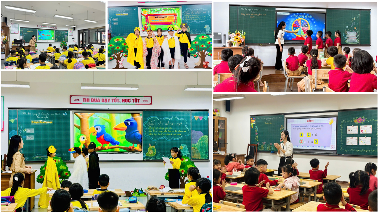 Có thể nói, thầy cô là những người dẫn đường tận tâm, còn học sinh là những nhà thám hiểm tri thức. Nhiều tiết dạy để lại ấn tượng nhờ sáng tạo và linh hoạt trong phương pháp. Chẳng hạn, trong các giờ Toán của cô Phạm Thúy Hoa và cô Đào Thị Minh Phượng, học sinh được thực hành và vận dụng kiến thức vào tình huống thực tế, phát triển tư duy logic. Tiết Tiếng Việt “Luyện từ và câu” của cô Nguyễn Thị Thúy, Đặng Thị Sáu giúp học sinh trải nghiệm thực tế trong xây dựng vốn từ phong phú, khơi gợi hứng thú và rèn luyện kĩ năng ngôn ngữ. Tiết Khoa học STEM “Âm thanh trong cuộc sống” của cô Đào Thùy Dung và tiết Tự nhiên - Xã hội “Một số sự kiện ở trường học” của cô Nguyễn Thị Thu Hiền đưa học sinh vào quan sát, thực hành chủ động, nuôi dưỡng tinh thần khám phá. Các giờ HĐTN, Giáo dục công nghệ hay các tiết Tiếng Việt khác đều được tổ chức linh hoạt, kết hợp nhuần nhuyễn giữa phương pháp truyền thống và hiện đại, giúp học sinh tiếp thu kiến thức, phát triển tư duy sáng tạo và kĩ năng giải quyết vấn đề.