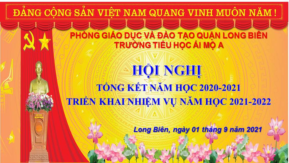 Mở đầu chương trình, đồng chí Bùi Thị Thu Hằng– Bí thư Chi bộ – Hiệu trưởng nhà trường báo cáo tóm tắt kết quả thực hiện nhiệm vụ năm học 2020 – 2021 của khối Giáo dục tiểu học quận Long Biên nói chung và trường tiểu học Ái Mộ A nói riêng.
