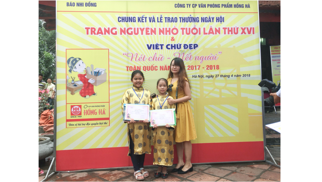 Hai em học sinh của Trường Tiểu học Ái Mộ A là em Nguyễn Tố Phương - lớp 5D và em Đỗ Hồng Ngọc – lớp 4B cũng đã góp mặt trong kì thi này. Các em đã mang về cho gia đình, trường lớp mình thành tích đáng tự hào khi đạt giải Khuyến khích Viết chữ đẹp Nét chữ - Nết người.