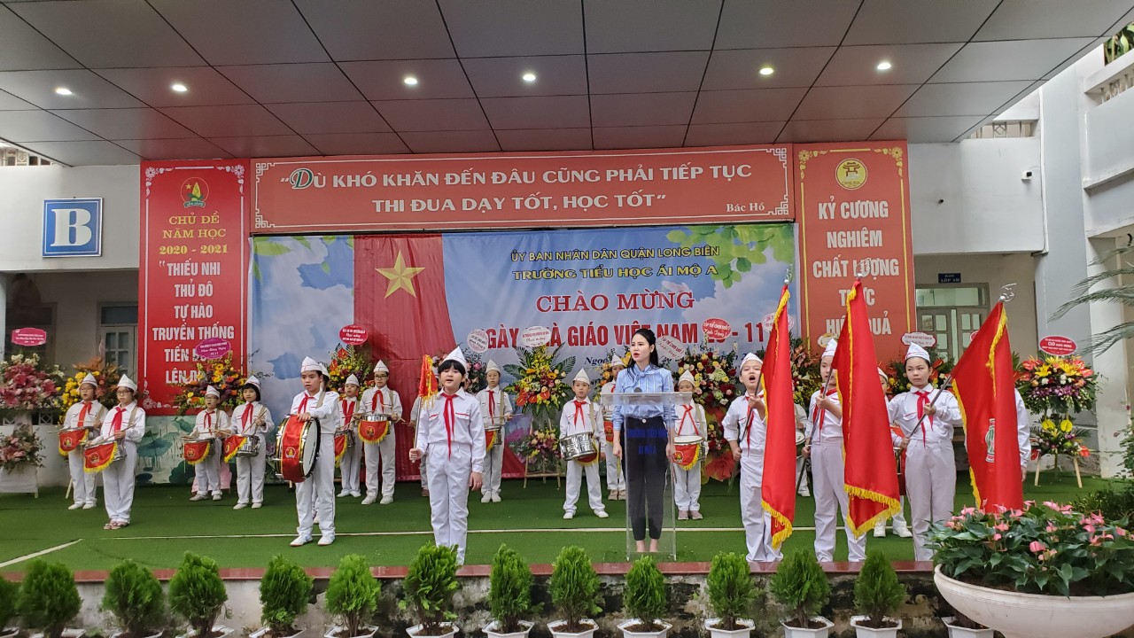 Phần nghi lễ chào cờ, hát Quốc ca, Đội ca diễn ra trong không khí trang trọng, cả trường đứng nghiêm, cùng hướng nhìn về lá cờ Tổ quốc đang tung bay trong gió. Sau phần nghi lễ là phần sơ kết các hoạt động Đội đợt 2 với chủ đề Chào mừng ngày Nhà giáo Việt Nam 20/11 của cô giáo Tổng phụ trách. Ở đợt thi đua này, các em học sinh trong liên đội đã tổ chức nhiều các hoạt đồng để tri ân thầy cô như: Thi tiết học hay, ngày học tốt; Thi Văn nghệ, thi cắm hoa, thi vẽ tranh, thi viết bài tri ân người lái đò, thi ảnh Nụ cười của bé…. Nhiều tập thể và cá nhân đã rất xuất sắc đạt được giải cao trong các nội dung dự thi thư: Giải xuất sắc văn nghệ của 3D; Nhất của 3B; 02 giải nhất – nhì cắm hoa của 4C; 02 giải xuất sắc và nhất bài viết của 5C… Các cuộc thi càng thành công hơn nữa khi nhận sự ủng hộ nhiệt tình qua vòng bình chọn online của quý vị Phụ huynh và các em học sinh qua Fanpage của nhà trường. Các bạn HS đạt giải và được nhận phần thưởng tại buổi "Lễ kỉ niệm 38 năm ngày nhà giáo Việt Nam 20/11" được tổ chức ngày 20/11/2020. Và ở tuần thi đua 11; hai tập thể lớp 1E và 5C đã vinh dự khi dẫn đầu về nề nếp ra vào, được nhận cờ thi đua từ tay cô Nguyễn Thị Bích Huyền – Bí thư chi bộ, Hiệu trưởng nhà trường trao cho với nhiều lời ngợi khen. Sau một tuần với sự cố gắng của cả tập thể lớp, nhận trên tay cờ thi đua, các em chắc hẳn vô cùng tự hào.