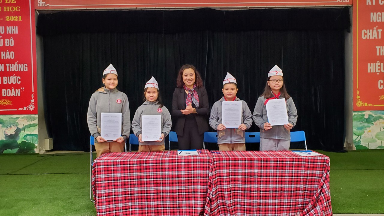 Sau khi được nghe đầy đủ nội dung của Nghị định số 137/2020/NĐ - CP về quản lý, sử dụng pháo, lần lượt đại diện các lớp lên kí cam kết không sử dụng pháo và thực hiện các nội dung đảm bảo an toàn trong ngày Tết.