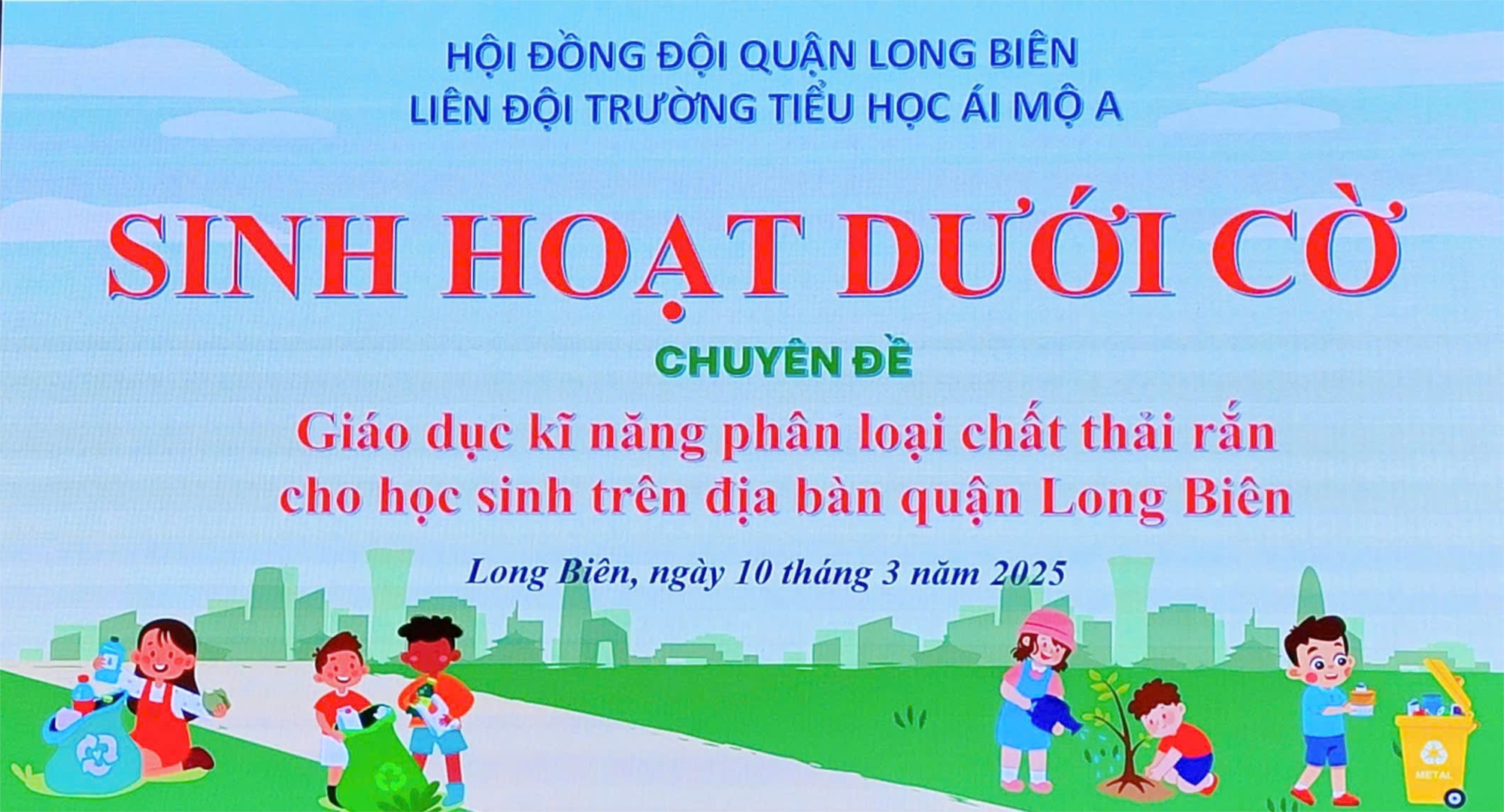 Trong tiết Sinh hoạt dưới cờ tuần này, các thầy cô giáo cùng hơn 800 bạn học sinh toàn trường tiếp sóng chuyên đề “Tuyên truyền giáo dục kĩ năng phân loại chất thải rắn cho học sinh trên địa bàn quận Long Biên”