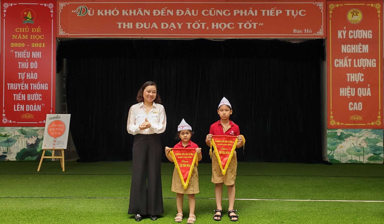 Hai lớp 1A và 3E đã vinh dự được cô Nguyễn Thị Bích Huyền – Bí thư chi bộ, Hiệu trưởng nhà trường trao tặng cờ thi đua cho tập thể xuất sắc nhất.