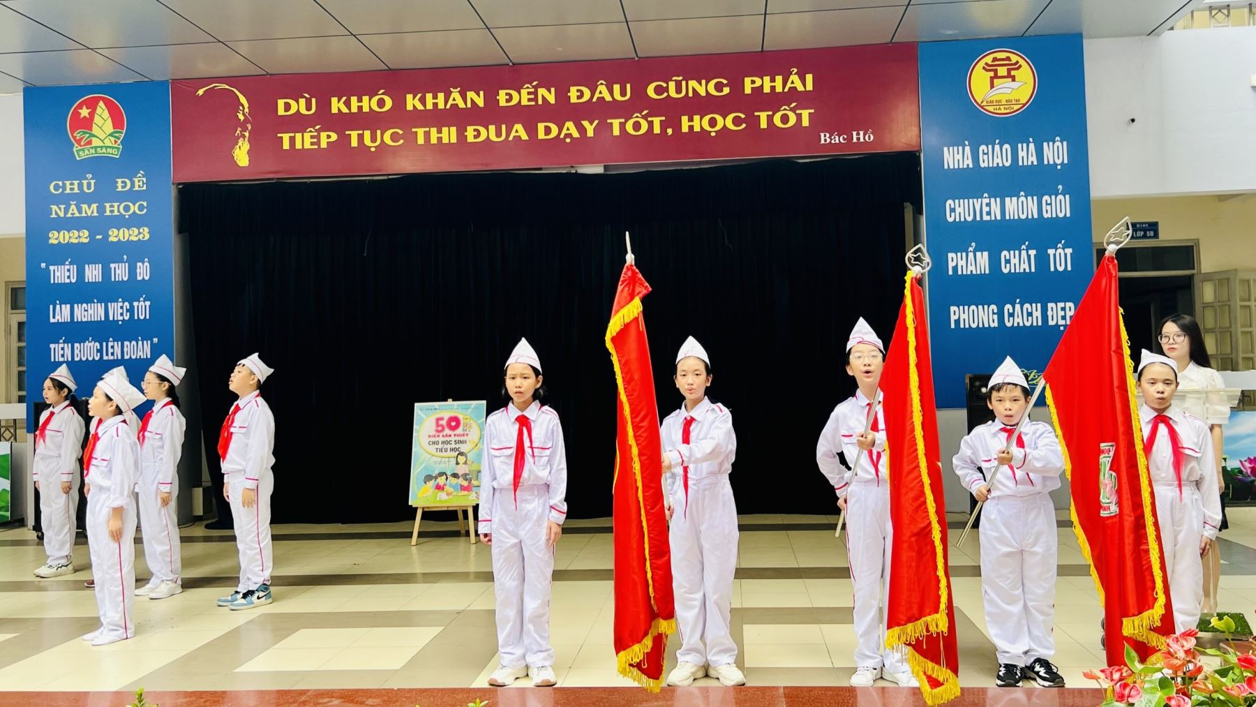 Sau phần Nghi lễ, cô giáo Nguyễn Ngọc Ánh lên nhận xét về nề nếp, hoạt động Đội của toàn trường trong tuần qua và triển khai các công việc mà các bạn học sinh cần thực hiện trong tuần 3, gồm những hoạt động cụ thể sau: