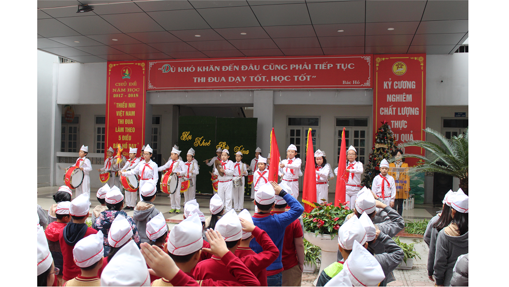 Tiếp theo là phần Phát động chùm hoạt động chào mừng 22/12( Ngày thành lập Quân đội nhân dân Việt Nam – ngày Quốc phòng toàn dân). Các hoạt động nổi bật mà học sinh toàn trường thực hiện với chủ đề: Tiếp bước cha anh gồm các hoạt động: tặng quà cho các chú bộ đội biên giới, hải đảo; viết thư gửi chú bộ đội; vẽ tranh về chú bộ đội; Tìm hiểu chiến thắng Điện Biên Phủ trên không của quân dân Hà Nội; Thăm và tặng quà đơn vị kết nghĩa nhân ngày 22/12,… Rất nhiều các nội dung thi đua phong phú được Liên đội tổ chức từ ngày 21/11 đến 22/12.