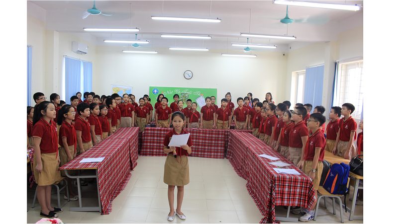 Sau nghi lễ chào cờ trang nghiêm, giới thiệu đại biểu, Đoàn Chủ tịch và Ban thư kí lên làm việc. Thay mặt Đoàn Chủ tịch, bạn Nguyễn Hồng Phúc thông qua chương trình Đại hội, bạn Nguyễn Ngọc Linh trình bày bản báo cáo tổng kết công tác của chi đội năm học 2016 – 2017 thông qua phương hướng hoạt động của chi đội năm học 2017 - 2018. Trong năm học 2016 - 2017, chi đội đã giành được nhiều thành tích về học tập; về nề nếp, kỉ luật cũng như các hoạt động Đội do nhà trường tổ chức.
