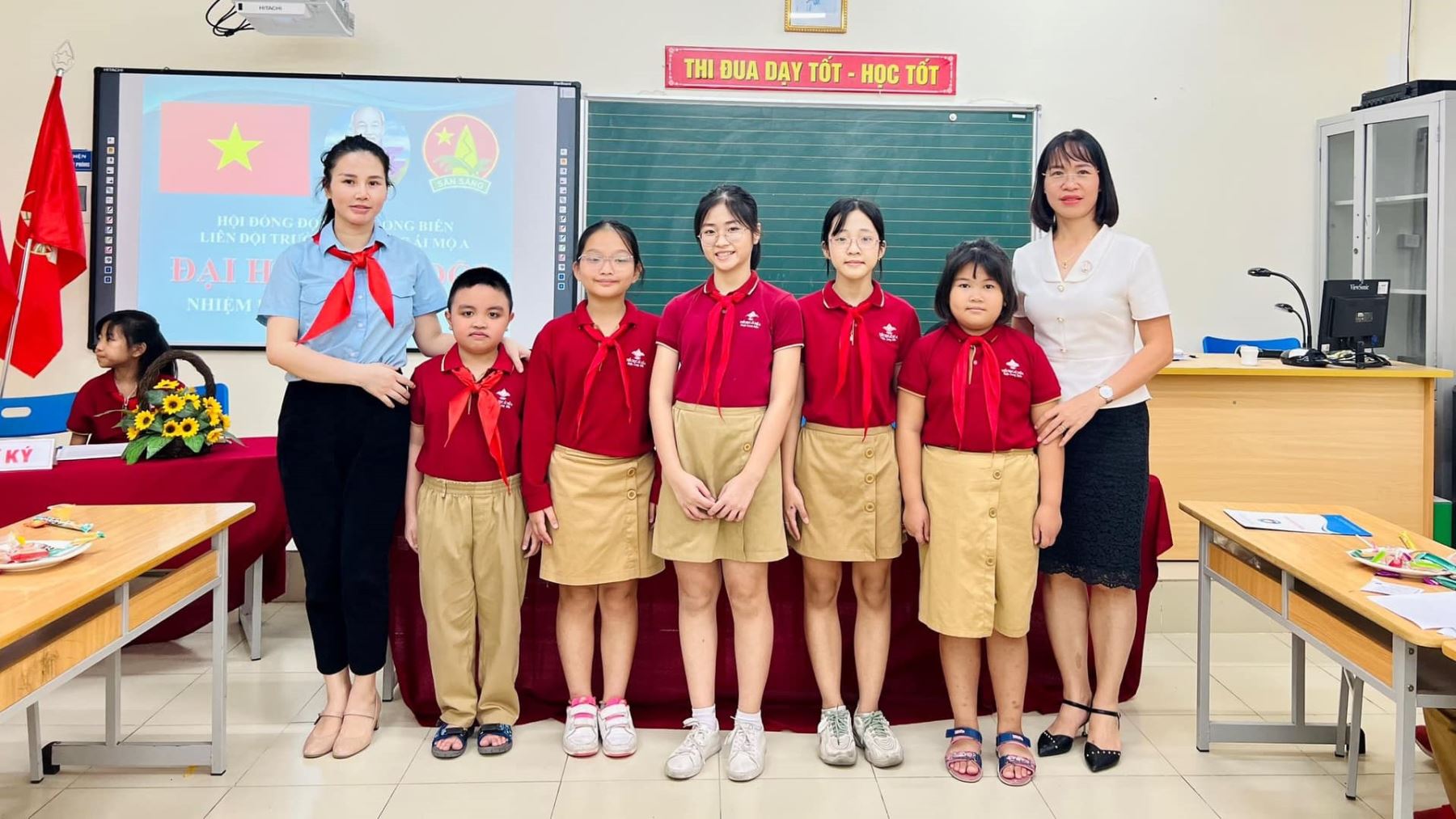 Về dự Đại hội có cô Nguyễn Phương Anh – giáo viên Tổng phụ trách , cô Bùi Thị Thu Hằng – Bí thư chi bộ Hiệu trưởng nhà trường, các thầy cô đại diện giảng dạy ở khối lớp 4,5 và 35 đội viên tiêu biểu đại diện cho gần 500 đội viên trong toàn Liên đội đã về dự đông đủ.