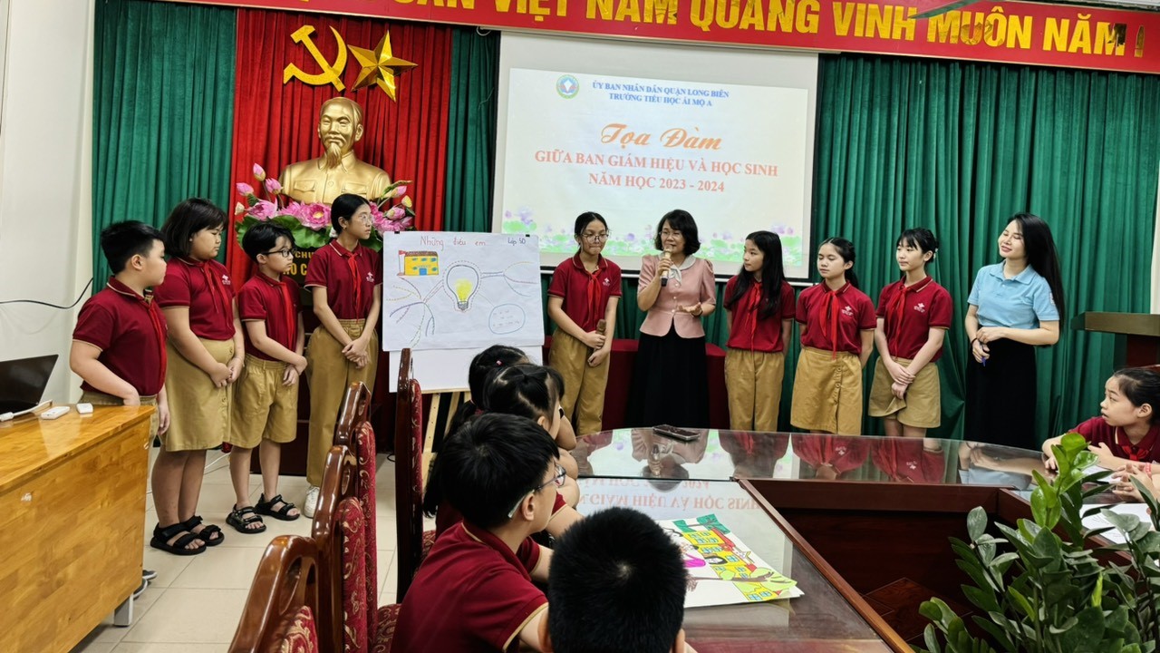 Việc tổ chức đối thoại giữa Ban giám hiệu nhà trường và đại diện học sinh các lớp là hoạt động thường niên được phụ huynh học sinh cũng như các em học sinh nhiệt tình ủng hộ, tin tưởng bởi tính dân chủ đã được thể hiện rõ nét trong buổi đối thoại. Bên cạnh đó, các em cũng có cơ hội được rèn kĩ năng nói trước đám đông và bày tỏ ý kiến của mình. Các thầy cô trong Ban giám hiệu nhà trường cũng mong muốn các em học sinh hãy mạnh dạn chia sẻ nguyện vọng, mong muốn của mình thông qua các buổi sinh hoạt dưới cờ, các tiết sinh hoạt lớp hoặc gặp gỡ riêng với cô giáo chủ nhiệm.... Tất cả những ý kiến của các em sẽ là những thông tin hữu ích để nhà trường định hướng và điều chỉnh các hoạt động giáo dục cho phù hợp nhằm mang lại môi trường giáo dục tốt nhất cho các em học sinh. Với tiêu chí cốt lõi “Con người được tôn trọng; Con người được sống trong môi trường thân thiện, an toàn giúp phát triển bản thân; Con người được yêu thương – thấu hiểu nhau”, tôi tin chắc chắn rằng, ngôi trường Tiểu học Ái Mộ A sẽ là một ngôi trường hạnh phúc, là nơi cha mẹ học sinh có thể hoàn toàn tin tưởng để gửi gắm con em mình theo học.