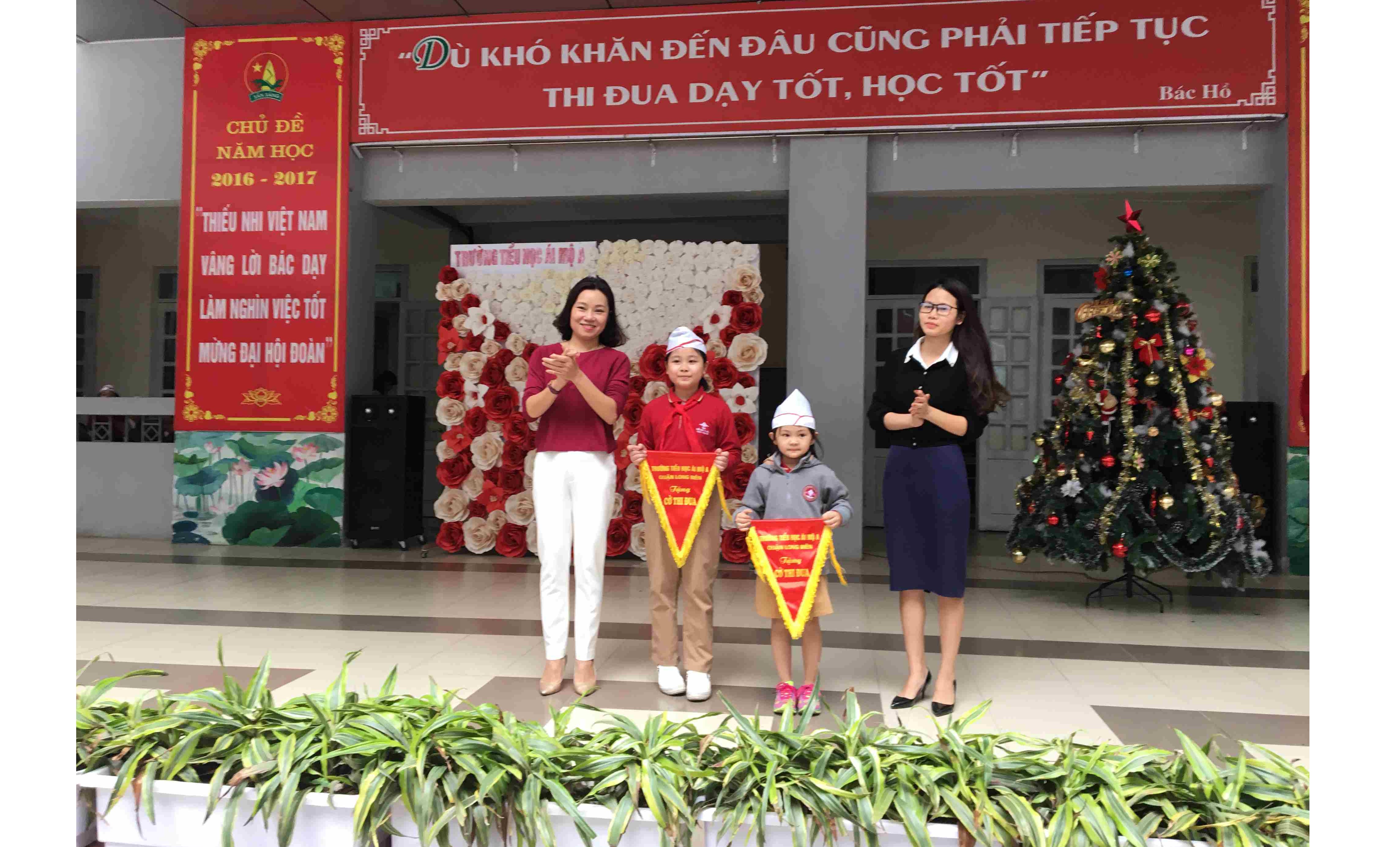 Thật vinh dự cho 2 tập thể lớp1D và lớp 5C đã dẫn đầu thi đua và nhận được cờ xuất sắc, nét mặt tươi vui phấn khởi hiện rõ khi các bạn đại diện lên nhận cờ từ cô Hiệu trưởng.