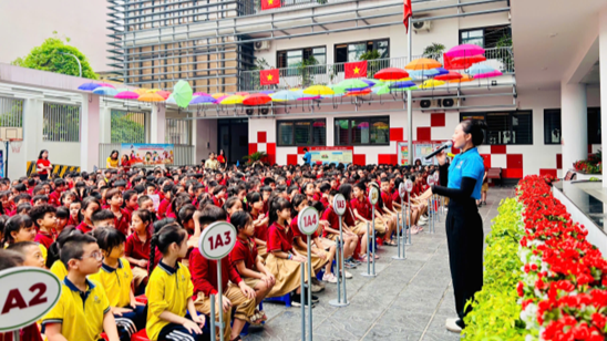 Sau phần xem phim, các em bước vào hoạt động giao lưu đầy sôi nổi và bổ ích. Thông qua hình thức hỏi - đáp gần gũi xoay quanh kiến thức lịch sử, các em đã thể hiện sự hiểu biết, tinh thần học hỏi và khả năng phản xạ linh hoạt. Bên cạnh đó, sân chơi “Vui khỏe đến trường - Năng lượng toàn diện” với những trò chơi theo khối lớp đã tạo không khí vui tươi, rèn luyện kỹ năng giao tiếp, sự tự tin và tinh thần đồng đội.