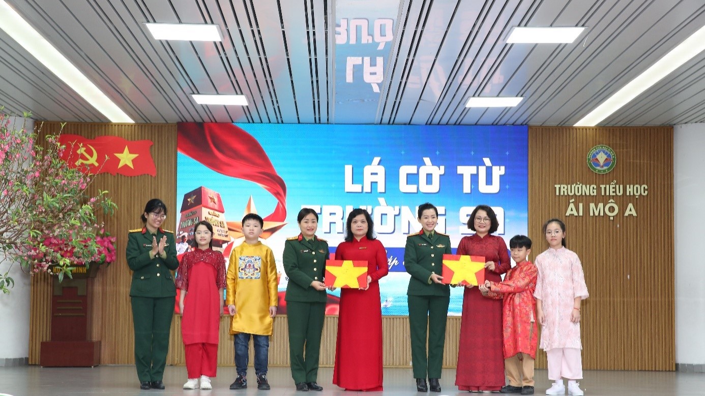 tại đảo Song Tử Tây, đã trực tiếp mang lá cờ về trao cho nhà trường. Đón nhận