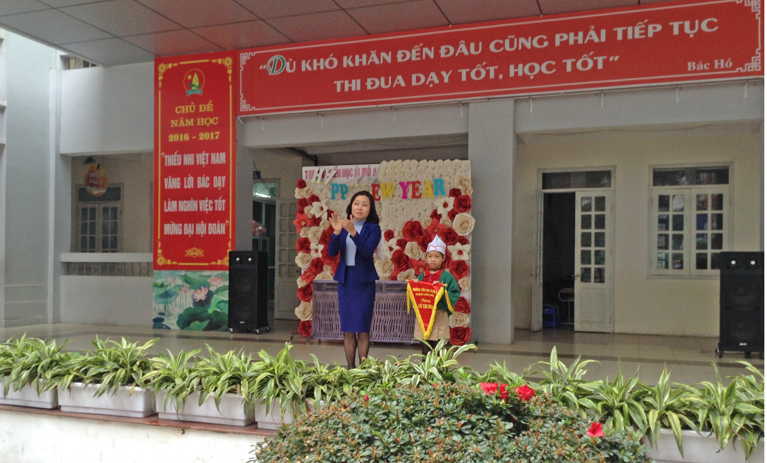 Cô giáo Nguyễn Thị Bích Huyền – Hiệu trưởng nhà trường trao cờ thi đua cho tập thể lớp xuất sắc 3B