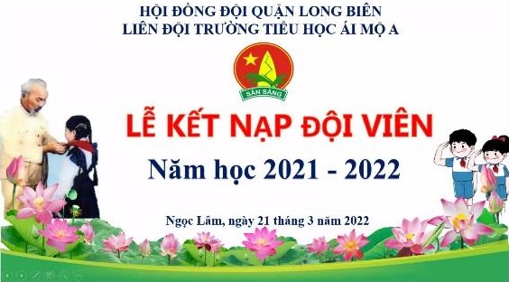 Sáng ngày 21/3/2022, được sự nhất trí của Ban Giám hiệu nhà trường, của Ban thiếu nhi, Liên đội trường Tiểu học Ái Mộ A tổ chức lễ kết nạp đội viên mới cho 83 em học sinh khối lớp 3 đã được thử thách, ghi nhận trong thời gian qua và có nguyện vọng đứng trong hàng ngũ của Đội.