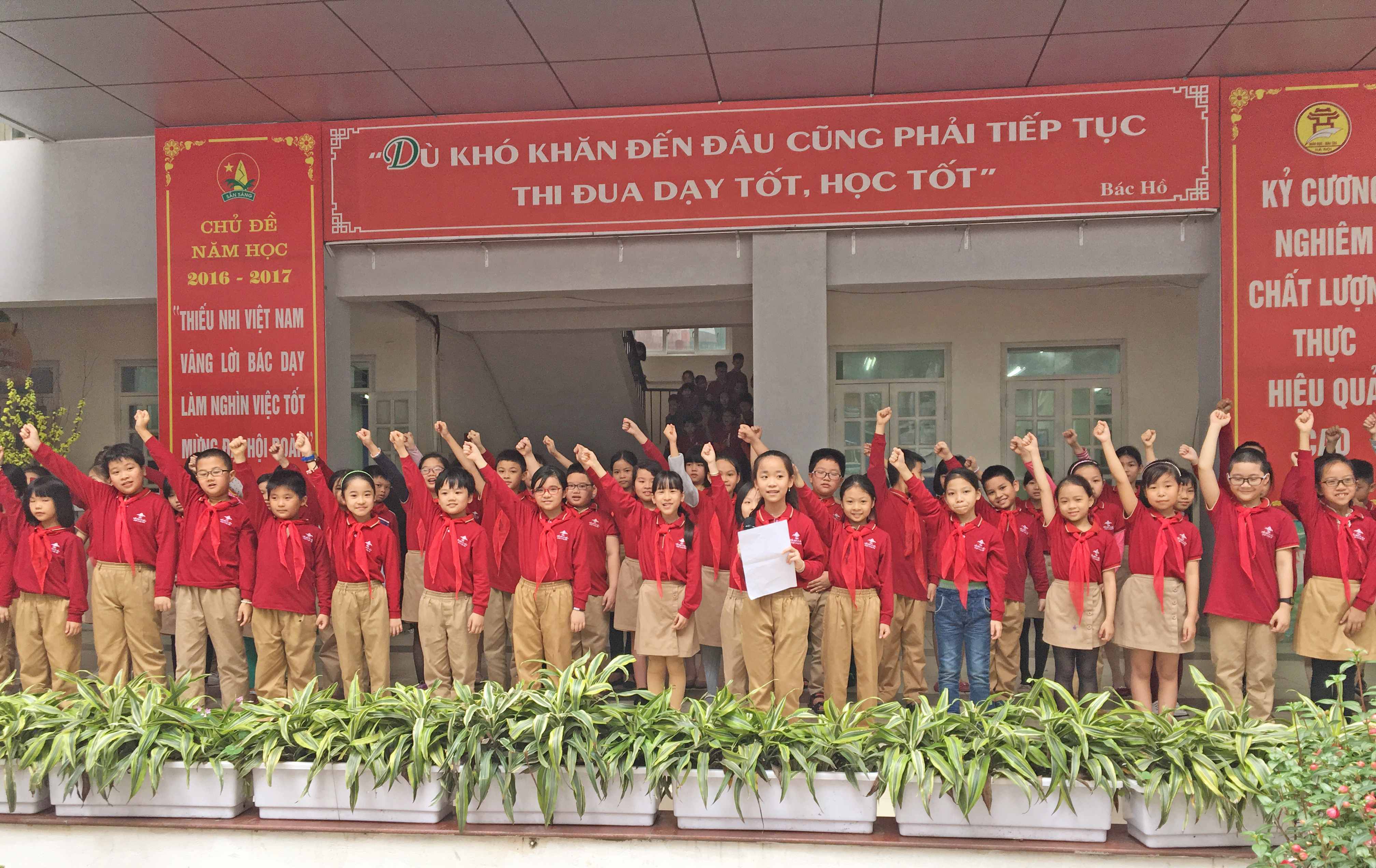 Dưới sự điều hành của Ban chỉ huy Liên đội, buổi lễ kết nạp đội viên mới diễn ra theo đúng nghi lễ của Đội. Sau phần nghi lễ trang nghiêm, các bạn nhi đồng ưu tú được đọc tên lần lượt lên phía trên sân khấu. Khuôn mặt bạn nào cũng rạng rỡ, phấn khởi. Bạn Nguyễn Anh Thư thay mặt cho 70 bạn học sinh được kết nạp Đội đợt này lên đọc đơn xin gia nhập Đội Thiến niên Tiền Phong Hồ Chí Minh.