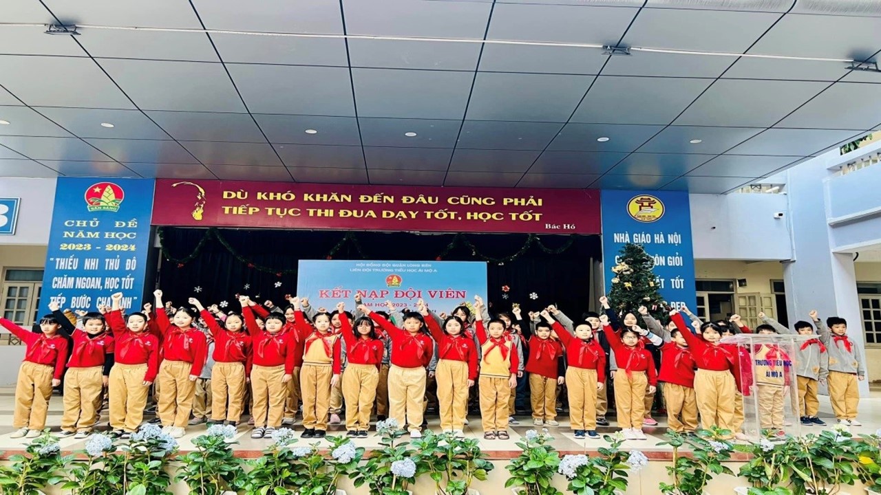 Khi thắt khăn quàng xong, cô giáo Đào Phương Anh – GV Tổng phụ trách đội nói: “Từ nay các em là Đội viên Thiếu niên Tiền phong Hồ Chí Minh, cô mong các em ra sức học tập và rèn luyện tốt, sẵn sàng nhận và hoàn thành nhiệm vụ được giao để xứng đáng là người Đội viên tốt, cháu ngoan Bác Hồ kính yêu!”. Cô vừa dứt lời thì những tiếng “Sẵn sàng” đồng thanh vang lên khiến buổi lễ càng tôn thêm vẻ trang trọng. Các em Đội viên càng khẳng định được sự quyết tâm của mình khi được đứng trong hàng ngũ của Đội.