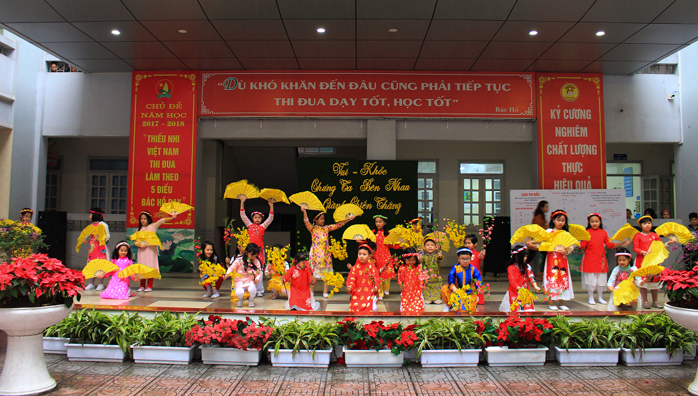 Mở đầu chương trình văn nghệ là tiết mục “ Nhảy hiện đại” do các bạn lớp 2C biểu diễn. Với những giai điệu sôi động, các bước nhảy rất hồn nhiên, vui tươi, nhí nhảnh thể hiện phong thái tự tin khiến cho cả sân trường như nóng lên theo tiếng nhạc. Nhảy hiện đại sẽ giúp các em tự khám phá và phát triển năng khiếu của bản thân,tăng độ dẻo dai và linh hoạt của cơ thể,giúp các em biết yêu nghệ thuật và thêm tự tin trong cuộc sống, đây là một bộ môn mà các bạn học sinh ai ai cũng đều rất yêu thích. Tiếp đó các bạn 2D đưa chúng ta về với không khí tưng bừng của ngày Tết cố truyền với tiết mục múa và hát “Ngày xuân long phụng sum vầy” nhạc và lời của nhạc sĩ Quang Huy. Mỗi khi xuân về, mọi người cùng nô nức chuẩn bị chào đón năm mới. Lời bài hát khơi dậy sức sống, mọi người cùng háo hức, cầu nguyện chào đón năm mới, mừng một năm an lành “Mừng Tết đến, lộc đến nhà nhà, cánh mai, cành đào hồng thắm tươi, cùng chúc mọi người sống lâu, sống thọ, con cháu sang năm lại đón Tết sang”. .Giai điệu cũng như lời bài hát “Ngày xuân long phụng sum vầy” lại được ngân vang, nhộn nhịp khắp mọi nơi, khắp mọi nhà đã kết thúc chương trình chào cờ tuần 25 với lời chúc các Thầy – Cô có 1 tuần làm việc hiệu quả; các bạn học sinh có 1 tuần học tập hăng say. Xin hẹn gặp các bạn ở giờ chào cờ tuần 26.