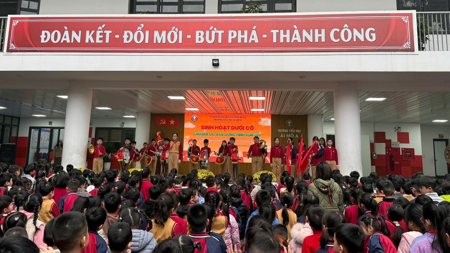 Lễ chào cờ trang nghiêm của học sinh trường Tiểu học Ái Mộ A.