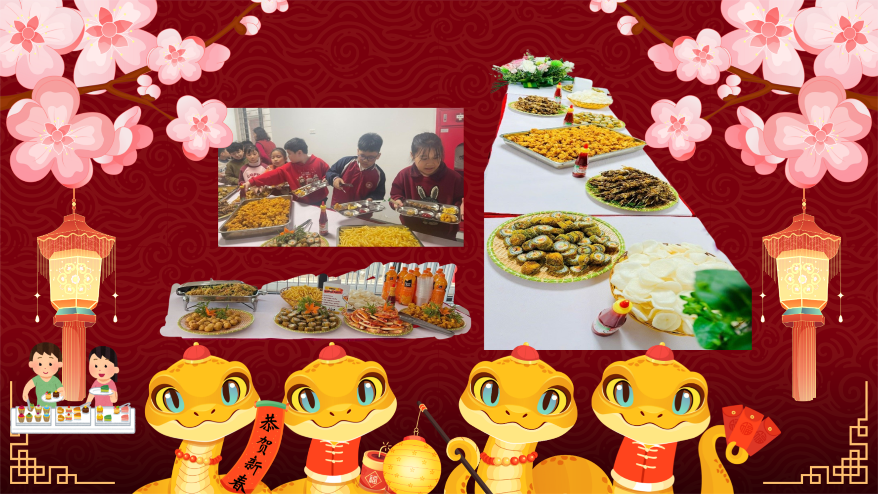 Để có được một bữa tiệc hoàn hảo, các cô nhà bếp và thầy cô giáo nhà trường đã tự tay chuẩn bị chu đáo và chế biến, trang trí đẹp mắt như những đầu bếp chuyên nghiệp bằng cả tấm lòng và tình yêu thương con trẻ để giúp cho các con có được những bữa tiệc Buffet ấn tượng, đa dạng và sáng tạo nhất. Các món ăn đều đảm bảo an toàn vệ sinh thực phẩm theo quy định từ khâu chọn lựa thực phẩm đến sơ chế và chế biến. Với nhiều cách bày trí sáng tạo nhưng vẫn giữ được đặc trưng của nó càng tăng thêm sự thích thú của các con học sinh khi được thưởng thức hương vị món ăn vô cùng hấp dẫn.