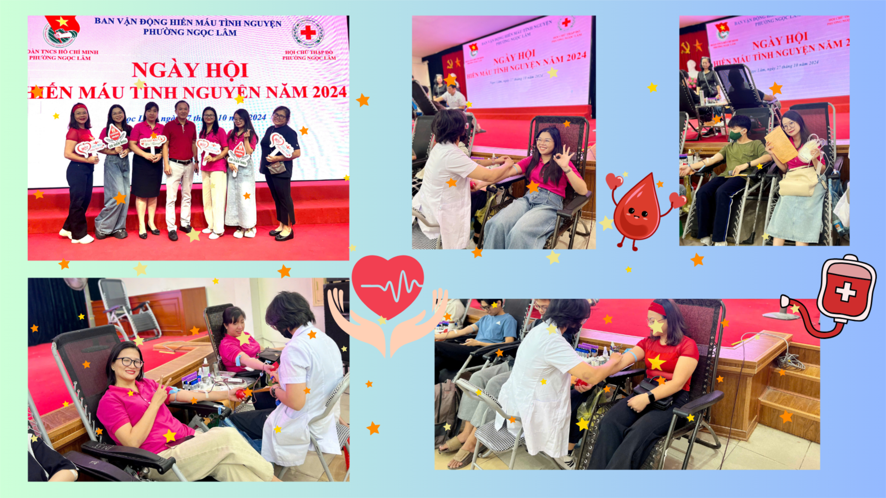 Hưởng ứng phong trào hiến máu năm 2024, sáng ngày 27/10/2024, tại Nhà văn hóa phường Ngọc Lâm, 6 đồng chí cán bộ, giáo viên, nhân viên trường Tiểu học Ái Mộ A đã tham gia và đủ điều kiện để hiến máu.
