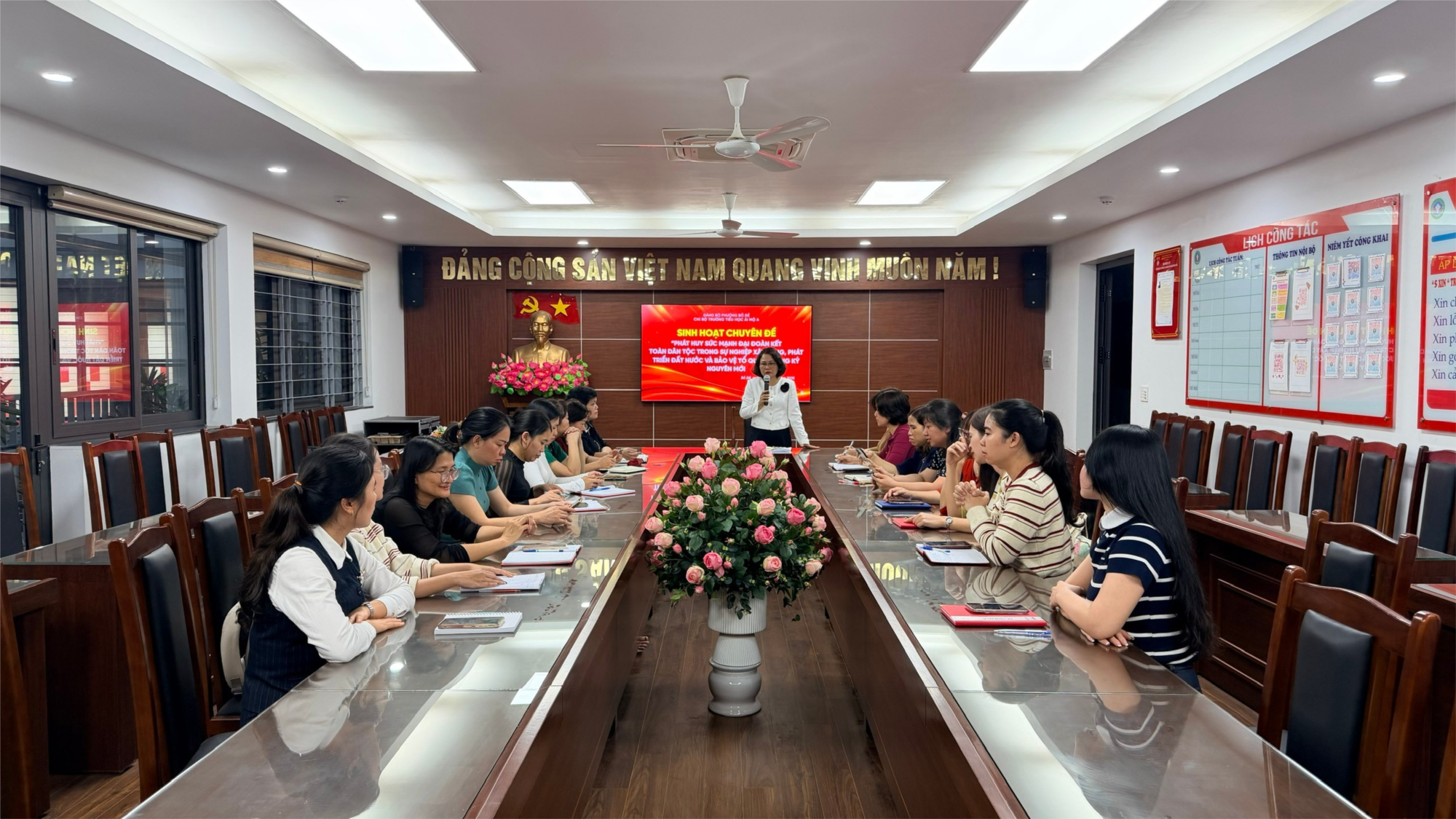 Buổi sinh hoạt được tổ chức nghiêm túc với sự tham gia đầy đủ của các đồng chí đảng viên trong Chi bộ. Đây là hoạt động chính trị có ý nghĩa quan trọng nhằm nâng cao nhận thức, trách nhiệm của mỗi cán bộ, đảng viên trước yêu cầu phát triển của đất nước và của ngành giáo dục trong giai đoạn mới.
