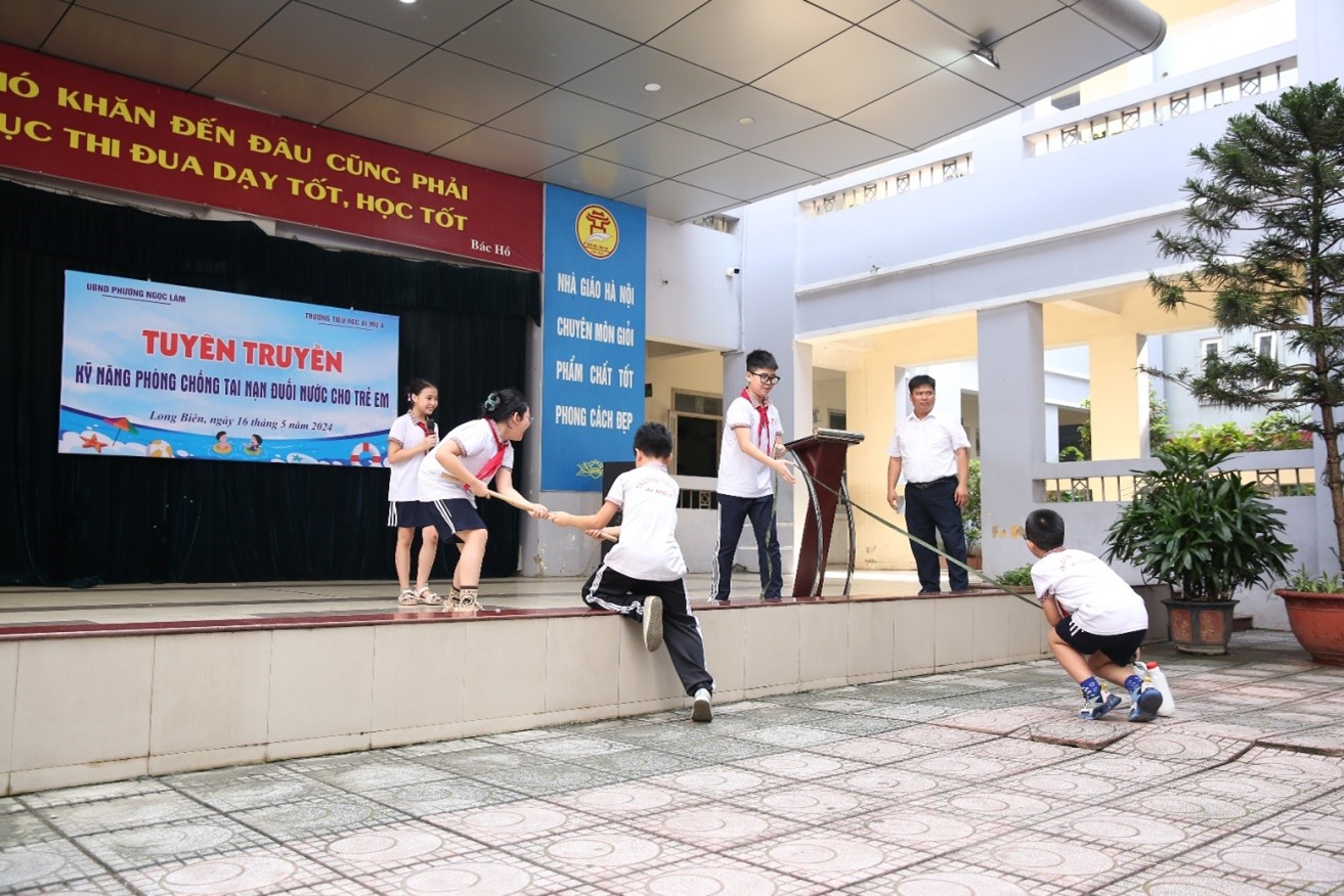 Bác sĩ Nguyễn Khắc Thúy đã hướng dẫn các em HS cách sơ cứu khi bị đuối nước. Bác sĩ đã hướng dẫn cách cứu người đang bị đuối nước.