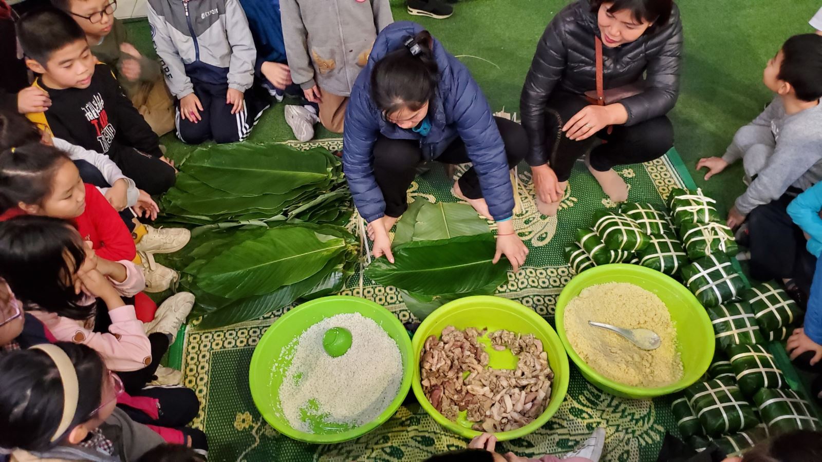 Hoạt động trải nghiệm tham quan quy trình gói bánh chưng nhân dịp Tết với mục đích bảo tồn và phát huy những giá trị văn hóa truyền thống là một hoạt động được nhà trường tổ chức những năm gần đây. Qua hoạt động này, học sinh sẽ được tìm hiểu và sống trọn vẹn trong không khí tết truyền thống. Hi vọng các bạn – nhưng mầm non tương lai của đất nước sẽ tiếp tục gìn giữ những nét đẹp trong phong tục tập quán của người Việt, từ đó thêm tự hào và thêm yêu đất nước Việt Nam.