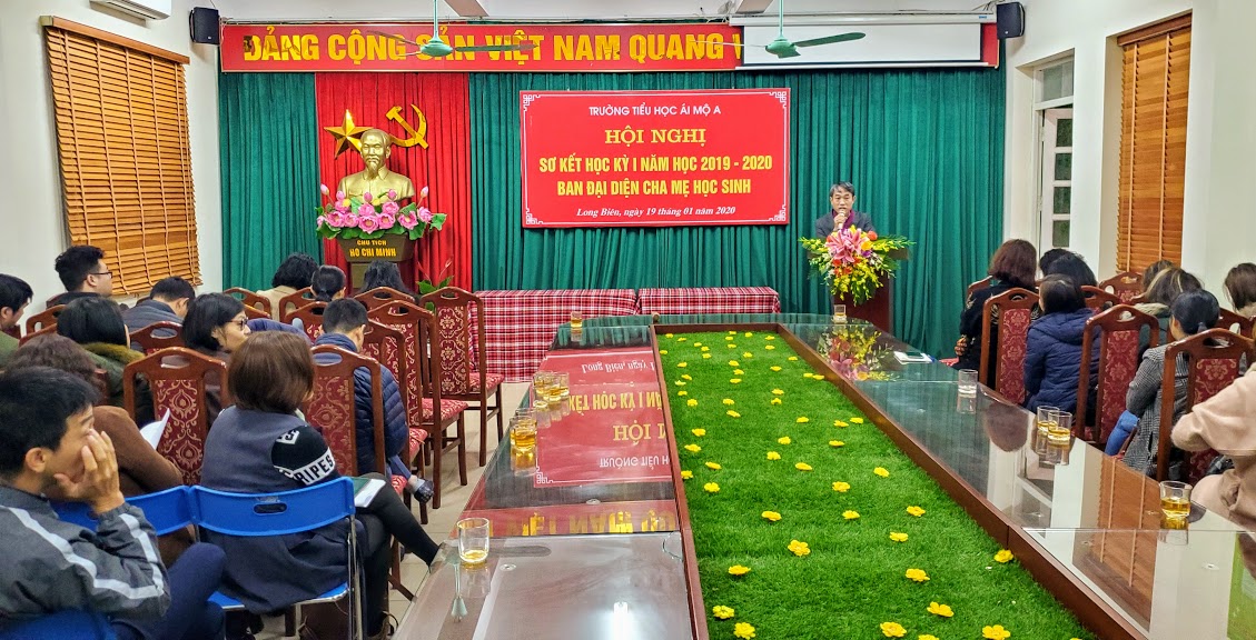 Tham gia Hội nghị sơ kết có đủ 100% Ban đại diện cha mẹ các chi hội cùng đội ngũ GVCN nhà trường. Mở đầu hội nghị, cô giáo Nguyễn Thị Bích Huyền – Bí thư Chi bộ - Hiệu trưởng nhà trường đã báo cáo ban đại diện các lớp về đặc điểm tình hình của nhà trường, các hoạt động của nhà trường trong học kì I về các mặt hoạt động: giáo dục đạo đức, hoạt động Đội, công tác trí dục, truyền thông, cơ sở vật chất., Đặc biệt, cô giáo Nguyễn Thị Bích Huyền cũng báo cáo cụ thể kết quả cuối học kỳ I ở các môn học cũng như kết quả đánh giá về năng lực, phẩm chất của học sinh trong toàn trường. Đồng thời cô đã phổ biến tới các bậc phụ huynh về phương hướng hoạt động, các mục tiêu trọng tâm của nhà trường trong học kỳ II về mọi mặt.Trong học kì II, nhà trường vẫn cam kết sẽ đảm bảo chất lượng giảng dạy, cũng như tăng cường thêm nhiều chương trình giáo dục đạo đức cho các em học sinh. Cùng với đó, các hoạt động Đội và các hoạt động ngoại khóa cũng sẽ được nhà trường chuẩn bị và triển khai một cách hợp lý và hiệu quả tới học sinh và PHHS. Một nội dung được cô hiệu trưởng phân tích kỹ đó là công tác chuẩn bị cho chương trình giáo dục phổ thông 2018 được thực hiện từ năm học 2020 – 2021. Nhà trường đã rà soát hệ thống CSVC, trang thiết bị dạy học… chuẩn bị cho lớp 1. Các thầy cô được phân công giảng dạy chương trình GDPT 2018 và BGH nhà trường đã được tham gia tập huấn, nghiên cứu về chương trình, hiện đang nghiên cứu các bộ sách dành cho các bé lớp 1. Một số các kế hoạch cho lớp 1 năm tới cũng đã được xây dựng dự thảo. Có thể khẳng định, nhà trường đã sẵn sàng cho việc thực hiện chương trình GDPT 2018. Mục tiêu của chương trình cũng đã được cô hiệu trưởng chuyển tải tới CMHS.