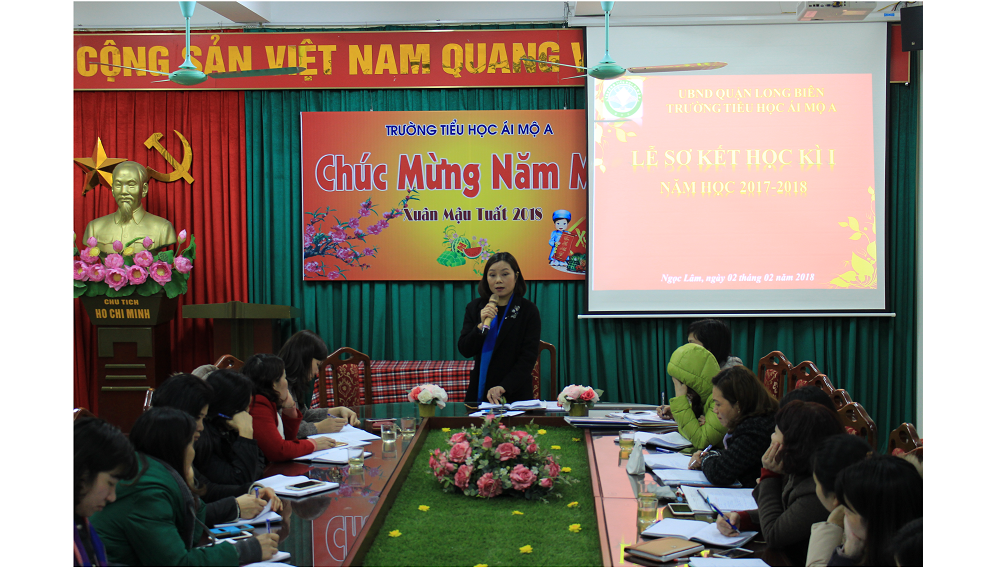 Học kỳ 1 đã trôi qua, với tinh thần vượt khó, năng động sáng tạo, yêu nghề mến trẻ, tập thể cán bộ, giáo viên, công nhân viên trường Tiểu học Ái Mộ A đã hoàn thành 2/3 chặng đường của năm học. Các nội dung cơ bản về chuyên môn đã được đồng chí Thái Thu Huyền - Phó Hiệu trưởng Nhà trường sơ kết đầy đủ, chi tiết. Trong bản sơ kết, đồng chí đã nhấn mạnh các thành tích nổi bật đó là :