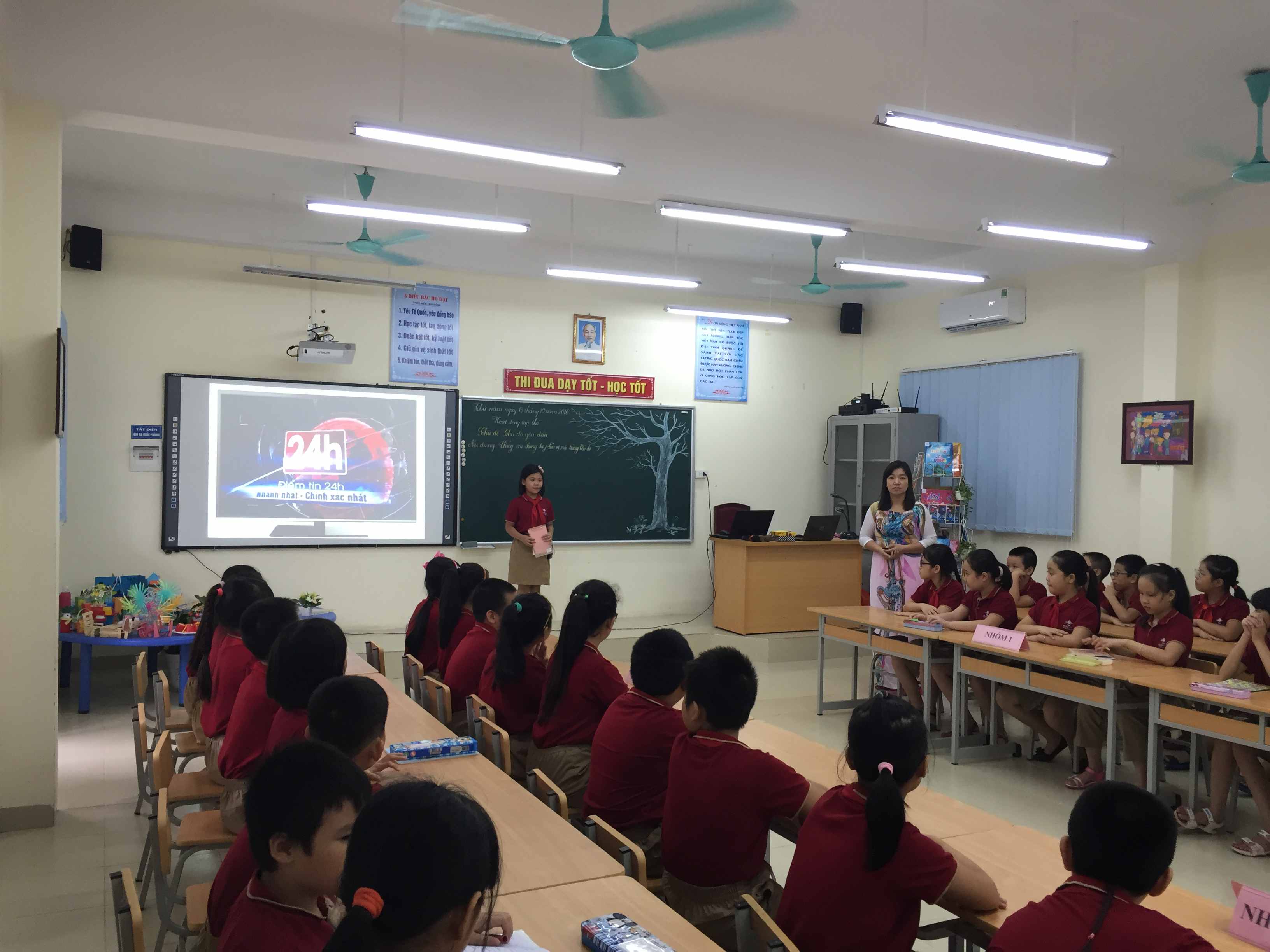 HS Tố Phương với "Bản tin 24h" trong tiết dạy HĐNGCK của cô giáo Nguyễn Thu Hồng