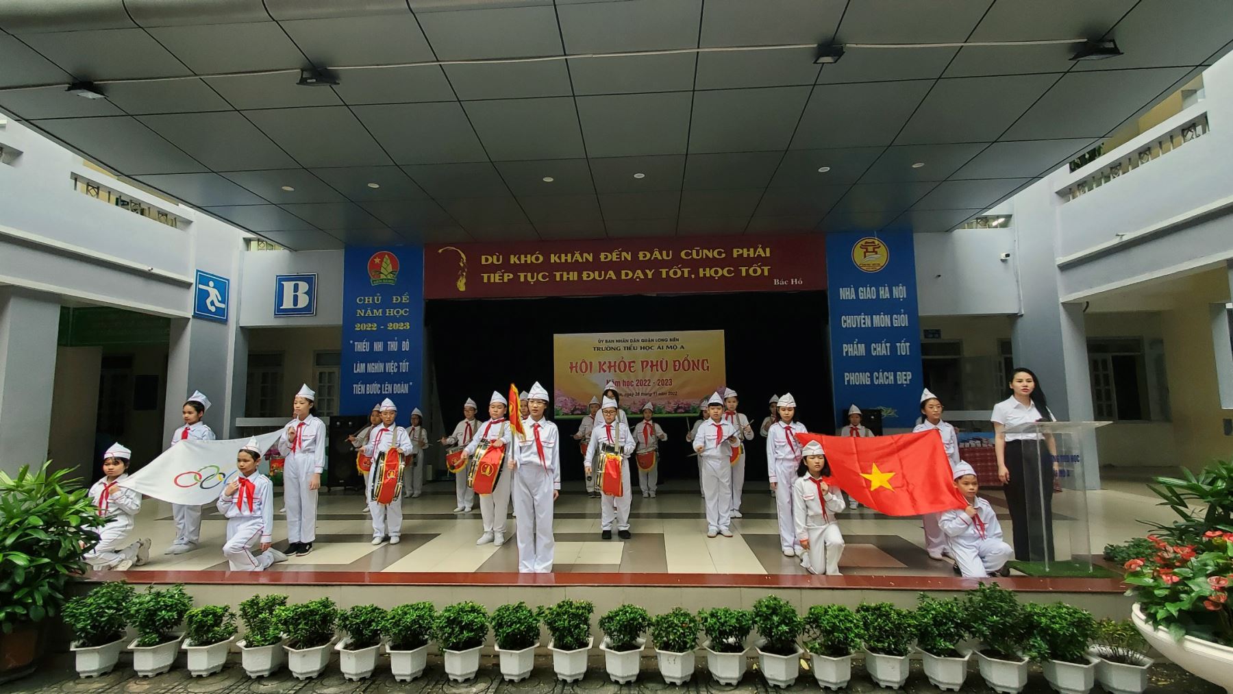 Sáng ngày 28/11/2022, thầy trò trường Tiểu học Ái Mộ A long trọng tổ chức Lễ Khai mạc Hội Khỏe Phù Đổng. Sau Nghi lễ chào cờ, bài “ Hành khúc Hội khỏe Phù Đổng” vang lên khiến cả sân trường với hơn 900 học sinh hừng hực khí thế quyết tâm.