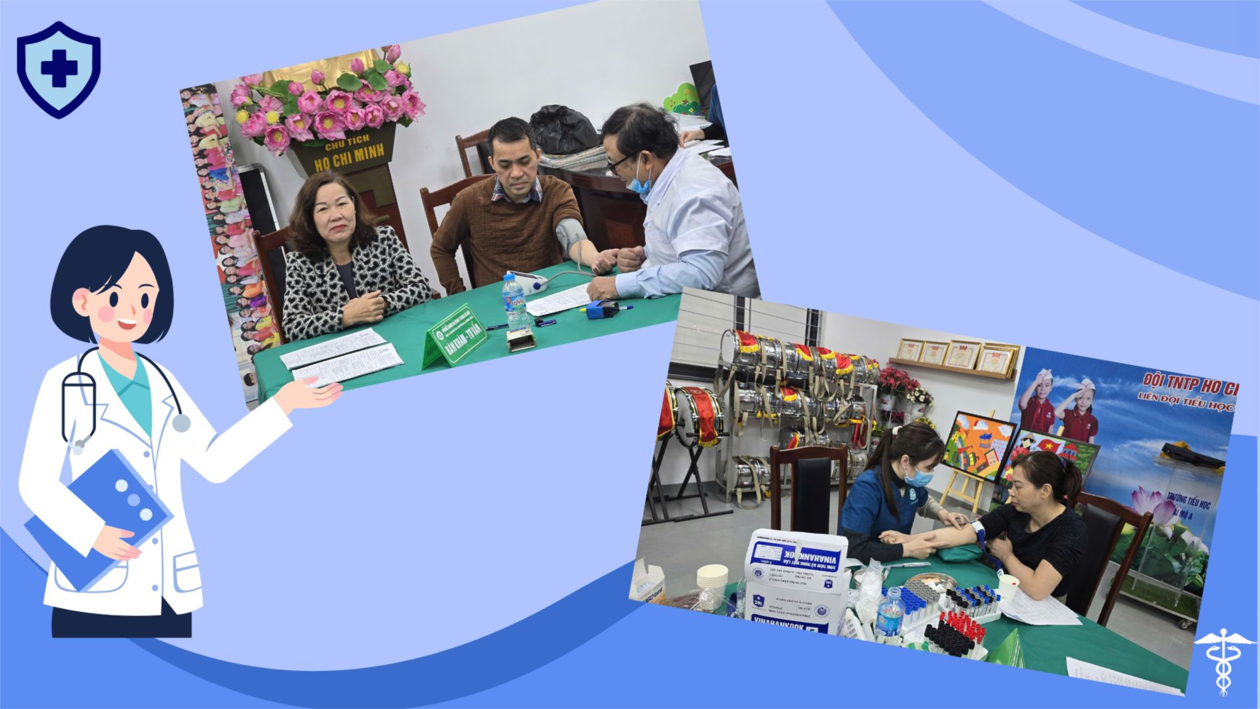 Hoạt động khám sức khỏe được thực hiện nghiêm túc thông qua việc lựa chọn đơn vị khám chữa bệnh uy tín với đa dạng các nội dung khám như: Khám tổng quát, xét nghiệm máu và nước tiểu, siêu âm bụng, ngực, tuyến giáp, làm xét nghiệm về công thức máu... Công tác này được đội ngũ bác sĩ phòng khám chuẩn bị chu đáo và thực hiện ngay tại nhà trường, tạo điều kiện thuận lợi cho giáo viên, nhân viên trong giảng dạy, công tác. Ngoài nội dung khám miễn phí, đoàn viên công đoàn nhà trường có thể đăng ký các nội dung khám khác theo nhu cầu cá nhân hoặc theo sự tư vấn chuyên môn của bác sĩ.
