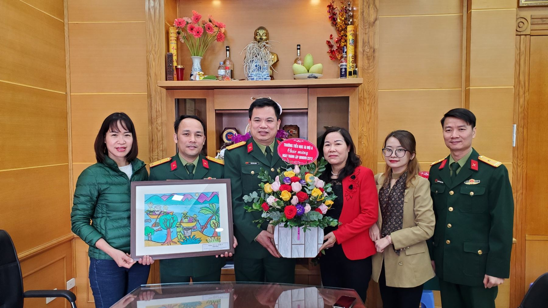 Hoà chung trong không khí tưng bừng ấy, sáng ngày 21/12/2021, các thầy cô giáo đã đại diện cho tập thể CB-GV-HS trường Tiểu học Ái Mộ A đến thăm hỏi, chúc mừng đơn vị kết nghĩa Tổng công ty 319 Bộ quốc phòng và các đơn vị thành viên. Đây là đơn vị đóng trên địa bàn phường Ngọc Lâm và đã kết nghĩa với nhà trường nhiều năm. Tại các điểm đến thăm, đại diện nhà trường, cô Bùi Thị Thu Hằng- Bí thư Chi bộ - Hiệu trưởng nhà trường đã gửi lời chúc mừng nồng nhiệt, bó hoa tươi thắm cùng những bức tranh của các em học sinh vẽ tặng các chú bộ đội đến các đơn vị nhân ngày thành lập Quân đội Nhân dân Việt Nam. Qua đó cũng bày tỏ tình cảm của các thầy cô giáo, các em học sinh đến toàn thể các cô bác đã và đang cống hiến cho sự nghiệp xây dựng và bảo vệ đất nước.