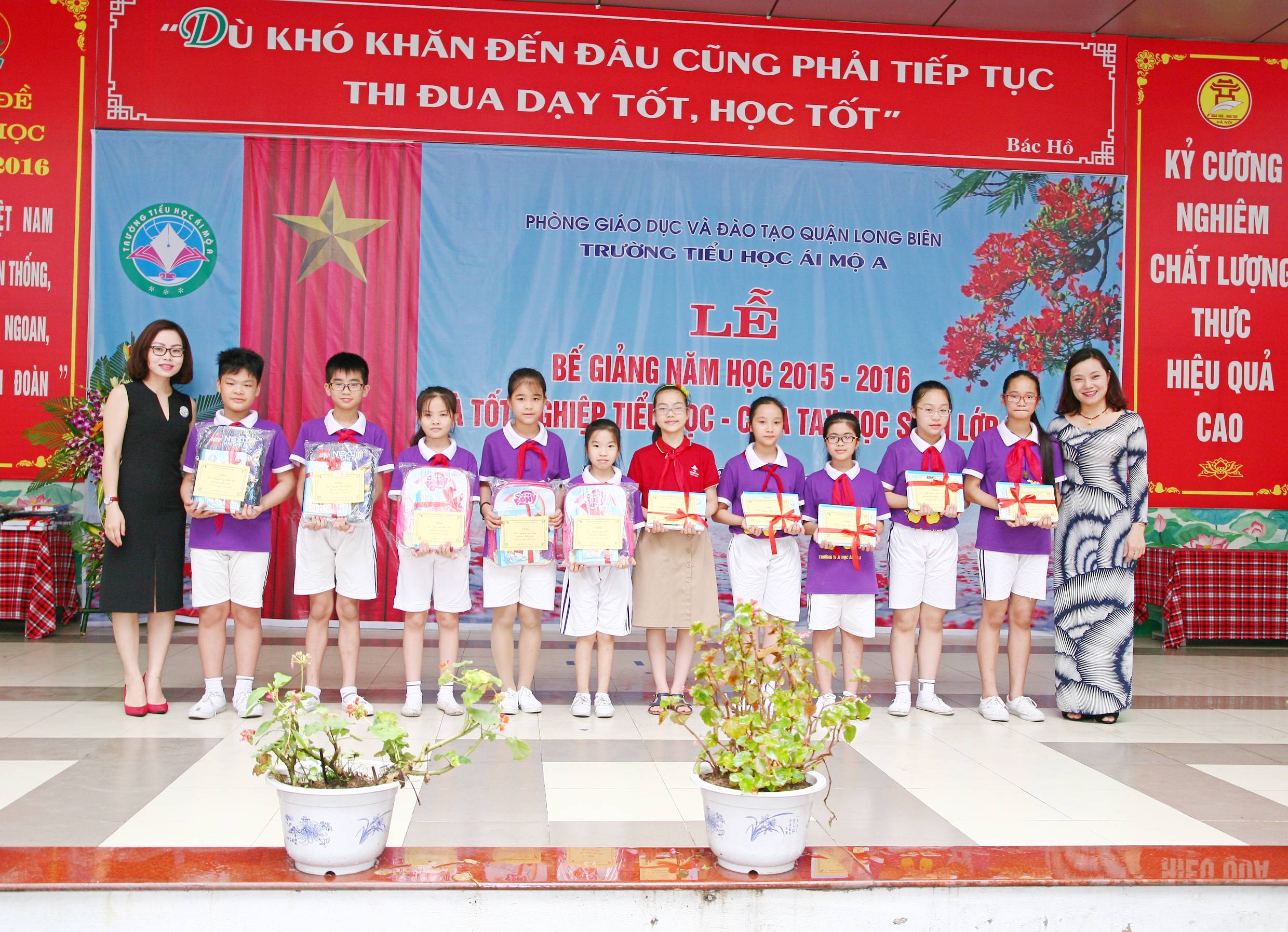 Để ghi nhận những kết quả của thầy và trò trường tiểu học Ái Mộ A đã đạt được trong năm học vừa qua, cô giáo Phùng Thị Hoa Thơm – Chủ tịch công đoàn - Phó ban thi đua khen thưởng của nhà trường đã điều hành phần trao thưởng cho giáo viên, học sinh đã có thành tích cao trong giảng dạy - học tập trong năm học 2015 - 2016.