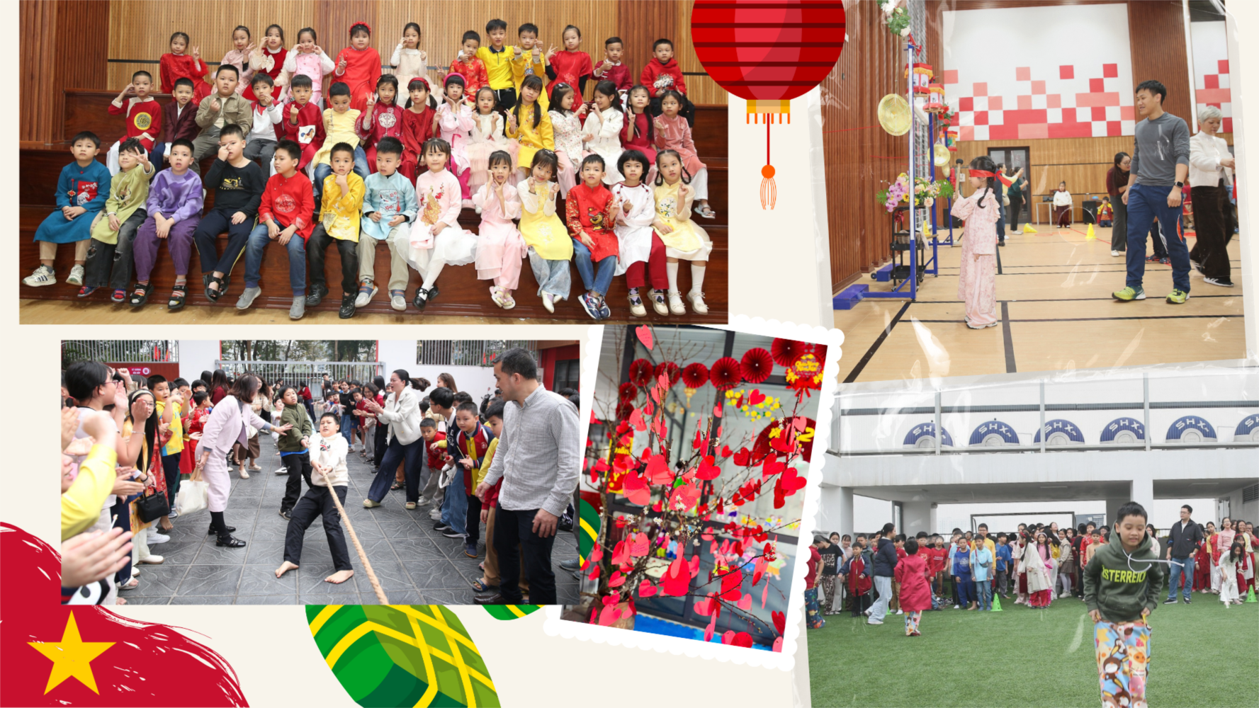 Trong buổi sáng, học sinh hào hứng tham gia chuỗi trò chơi dân gian và hoạt động trải nghiệm được bố trí khoa học tại nhiều khu vực như sân trường, nhà thể chất và sân cỏ tầng thượng. Những trò chơi quen thuộc, giàu bản sắc truyền thống như bịt mắt đánh trống, nhảy bao bố, cùng các hoạt động làm kẹo bông, chụp ảnh lưu niệm, viết điều ước đầu xuân đã mang đến không khí rộn ràng, phấn khởi, để lại nhiều kỷ niệm đẹp trong lòng các em học sinh. Mỗi khu vực đều có giáo viên phụ trách trực tiếp, tổ chức cho học sinh tham gia luân phiên theo từng khối lớp, giúp các em được trải nghiệm đầy đủ các hoạt động trong không khí vui tươi, trật tự và an toàn tuyệt đối.