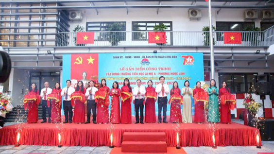 Nghi thức cắt băng, gắn biển Công trình cấp Quận chào mừng 70 năm ngày Giải phóng Thủ đô