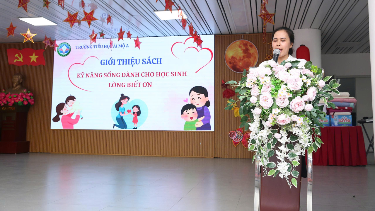 Chuyên đề được dẫn dắt sinh động qua phần giới thiệu cuốn sách “Kĩ năng sống dành cho học sinh - Lòng biết ơn” của cô Nguyễn Thị Thu Hiền nhân viên thư viện. Với chất giọng ấm, truyền cảm, cách nêu vấn đề hấp dẫn, cô Hiền đã dẫn dắt các em trải nghiệm những câu chuyện giản dị, sâu sắc, gieo vào tâm hồn các em hạt giống yêu thương và trách nhiệm đối với ông bà, cha mẹ, thầy cô và mọi người xung quanh. Một lời cảm ơn, một cái ôm, hay những hành động quan tâm nhỏ bé đều có thể tạo nên những điều tử tế, lan tỏa yêu thương vô cùng kì diệu.