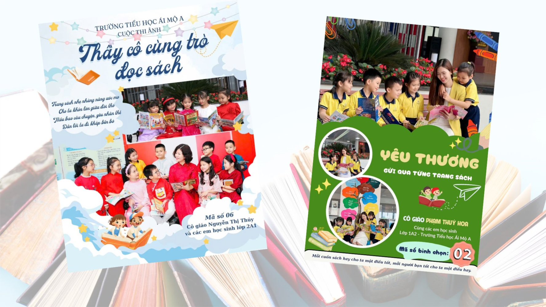 Một trong những hoạt động, điểm sáng tạo, đổi mới của Ngày hội đọc sách năm học 2024-2025, thu hút sự tham gia của các cô giáo chủ nhiệm và 22 tập thể lớp, mang đến một nét đẹp trong văn hóa đọc tại ngôi trường Tiểu học Ái Mộ A đó là cuộc thi ảnh “Thầy cô cùng trò đọc sách”. Đây là cuộc thi ý nghĩa nhằm ghi lại, lưu giữ lại những khoảnh khắc đẹp nhất của các thầy cô giáo cùng tham gia đọc sách với các con học sinh – một hình ảnh mới của người thầy không chỉ là người truyền thụ kiến thức mà còn là người dẫn dắt các con học sinh chinh phục, khám phá nguồn tri thức mới ngoài khuôn khổ sách giáo khoa. Tại những khoảng không gian của nhà trường như phòng thư viện, góc thư viện mở, vườn trường, ghế đá… với muôn vàn sắc màu, dưới ống kính thầy cô cùng những cô cậu học trò đáng yêu của mình đầy cảm xúc, gắn kết bên những trang sách. Cuộc thi đã thu hút và nhận được hàng triệu lượt bình chọn, yêu thích và chia sẻ của các thầy cô giáo trong nhà trường và đông đảo phụ huynh học sinh. Đó chính là niềm động viên ý nghĩa, to lớn nhất cho thầy và trò nhà trường cùng nhau nỗ lực không ngừng. Ban tổ chức dựa trên kết quả của Ban giám khảo và lượt bình chọn của PHHS đã chọn ra: