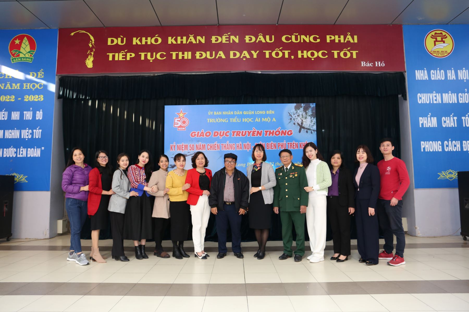 Để giúp học sinh hiểu được ý nghĩa to lớn của ngày 22/12, đồng thời hình thành và phát triển cho học sinh lòng tự hào về truyền thống quý báu của dân tộc, trường Tiểu học Ái Mộ A đã phối hợp cùng Ban đại diện Cha mẹ học sinh các lớp tổ chức chương trình giao lưu kỉ niệm 78 năm Ngày Thành lập Quân đội Nhân dân Việt Nam, 50 năm chiến thắng Hà Nội – Điện Biên Phủ trên không. Tham gia buổi giao lưu là các cô bác trong Nhà văn hóa Cựu chiến binh Hà Nội, đặc biệt là vị khách mời vô cùng đặc biệt – nhà thơ Trần Đăng Khoa