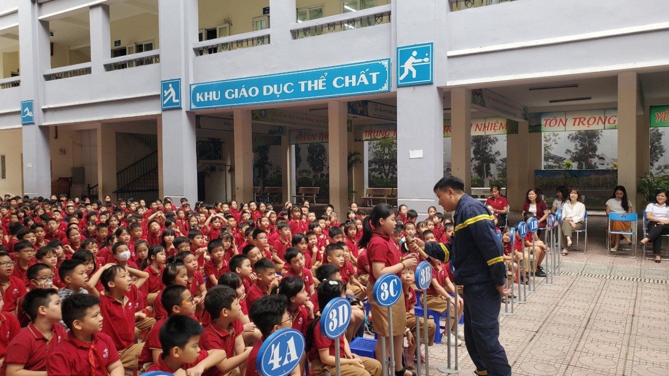 Sáng ngày 16/10/2023, dưới tiết sinh hoạt chào cờ đầu tuần, trường TH Ái Mộ A tổ chức buổi tuyên truyền kĩ năng thoát nạn trong đám cháy cho CBGV, NV và học sinh toàn trường.