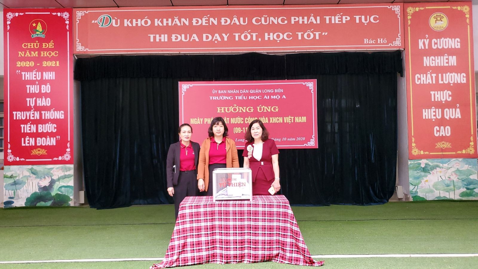 Hưởng ứng lời kêu gọi của Ủy ban Mặt trận Tổ Quốc Việt Nam quận Long Biên, Thư kêu gọi của Đoàn TNCS Hồ Chí Minh Quận Long Biên, Tuần lễ từ ngày 19/10/2020 đến ngày 26/10/2020, trường Tiểu học Ái Mộ A đã tổ chức chuỗi các hoạt động kêu gọi các các thầy cô giáo, các bậc PHHS, các bạn học sinh trong nhà trường cùng chung tay chia sẻ, ủng hộ nhân dân Miền Trung khắc phục hậu quả nặng nề của những trận lũ kép, ảnh hưởng của nhiều cơn bão, mưa lũ lịch sử.