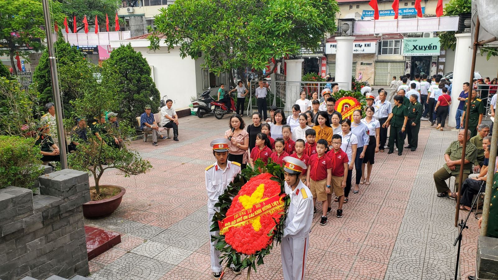 Sau khi thực hiện các nghi lễ dâng hương và dâng hoa tưởng niệm, các thày cô giáo và các em học sinh đã đi thắp hương trước các bia ghi danh các anh hùng liệt sĩ, bày tỏ lòng thành kính trước anh linh của các anh hùng liệt sĩ.
