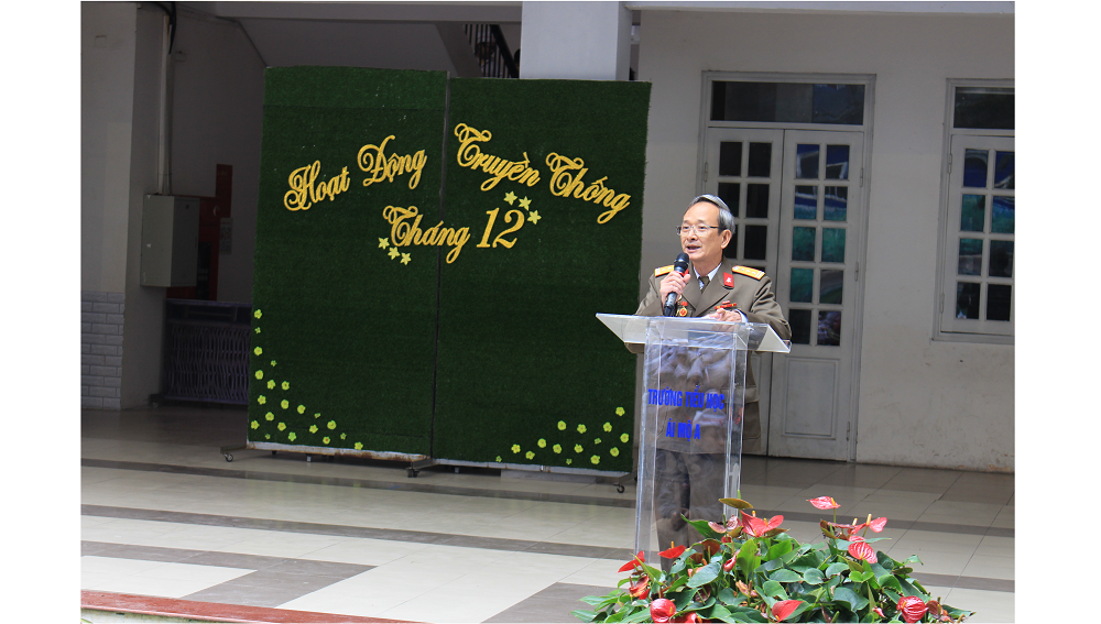 Như thường lệ , nghi lễ chào cờ được diễn ra trang nghiêm với sự có mặt của tập thể giáo viên , học sinh nhà trường cùng các bác cựu chiến binh phường Ngọc Lâm. Sau đó , thầy và trò nhà trường đã rất vui mừng khi được lắng nghe bác Nguyễn Trà Vinh - Ủy viên thường vụ Ban Chấp hành hội Cựu chiến binh phường Ngọc Lâm lên nói chuyện truyền thống về ngày 22/12, về chiến thắng Điện Biên Phủ trên không. Với niềm tự hào dân tộc, tình yêu quê hương đất nước, với trách nhiệm của một người lính đã trải qua và chứng kiến những năm tháng hào hùng , oanh liệt của dân tộc Việt Nam, bằng sự cởi mở, gần gũi bác đã giúp các em học sinh hiểu hơn về ngày lịch sử trọng đại của đất nước, về một chiến thắng Điện Biên Phủ trên không lừng lẫy năm châu, chấn động địa cầu. Cách đây 73 năm, ngày 22/12/1944, Đội Việt Nam tuyên truyền giải phóng quân, tổ chức tiền thân của quân đội nhân dân Việt Nam được thành lập. Sự ra đời của Quân đội ta là một sự kiện lịch sử trọng đại của cách mạng Việt Nam. Lần đầu tiên trong lịch sử, giai cấp công nhân và nhân dân Việt Nam có một Quân đội kiểu mới do Đảng cộng sản Việt Nam và Chủ tịch Hồ Chí Minh tổ chức, giáo dục, rèn luyện; một Quân đội của dân, do dân, vì dân, mang bản chất giai cấp công nhân; chiến đấu vì độc lập dân tộc và Chủ nghĩa xã hội, vì tự do, hạnh phúc của nhân dân.Và 45 năm về trước, trong 12 ngày đêm chiến đấu anh dũng, kiên cường, mưu trí, sáng tạo, quân và dân ta đã đánh bại hoàn toàn cuộc tập kích chiến lược đường không quy mô lớn chưa từng có của đế quốc Mỹ, làm nên Chiến thắng “Hà Nội - Điện Biên Phủ trên không”. Chiến thắng đã góp phần bảo vệ vững chắc miền Bắc xã hội chủ nghĩa, giữ vững thành quả cách mạng; buộc đế quốc Mỹ phải ký Hiệp định Paris ngày 27-1-1973 chấm dứt chiến tranh ở Việt Nam, góp phần quan trọng vào Đại thắng mùa Xuân năm 1975, giải phóng hoàn toàn miền Nam, thống nhất đất nước.