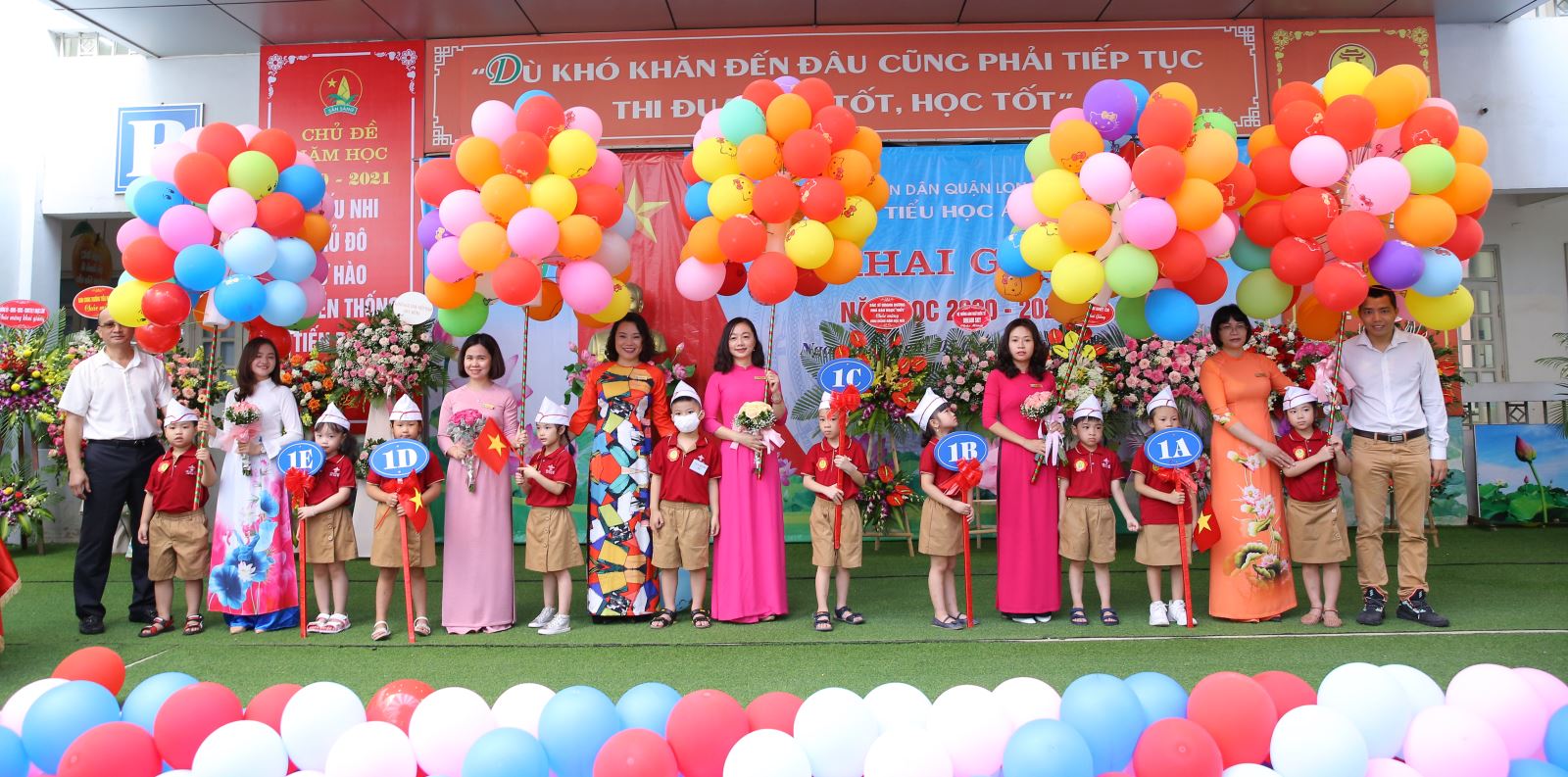 Sân trường hôm nay được trang trí rực rỡ với cờ hoa, biểu ngữ và rất nhiếu trái bóng bay đủ màu sắc chào đón ngày tựu trường của hơn 1000 học sinh khiến ai bước vào cũng đều trào dâng cảm xúc rưng rưng của ngày khai giảng thiêng liêng. Từ sáng sớm, các bạn học sinh đã nô nức đến trường để chuẩn bị cho lễ khai giảng. Ngay từ ngoài cổng trường, nhà trường đã bố trí các thày cô giáo và cán bộ nhân viên nhà trường phân luồng đón học sinh và đại biểu đến dự để thực hiện các biện pháp phòng, chống dịch Covid -19 như đo thân nhiệt, phát bổ sung khẩu trang, sát khuẩn tay, hướng dẫn vị trí tập trung,…. Sau khi được được kiểm tra thân nhiệt đảm bảo an toàn, các bạn học sinh lên lớp tập trung dưới sự hướng dẫn của cô giáo chủ nhiệm. Để đảm bảo an toàn phòng chống dịch bệnh, học sinh khối 1, khối 5 sẽ tham dự lễ khai giảng dưới sân trường, học sinh khối 2, khối 3, khối 4 dự lễ khai giảng trên lớp học.
